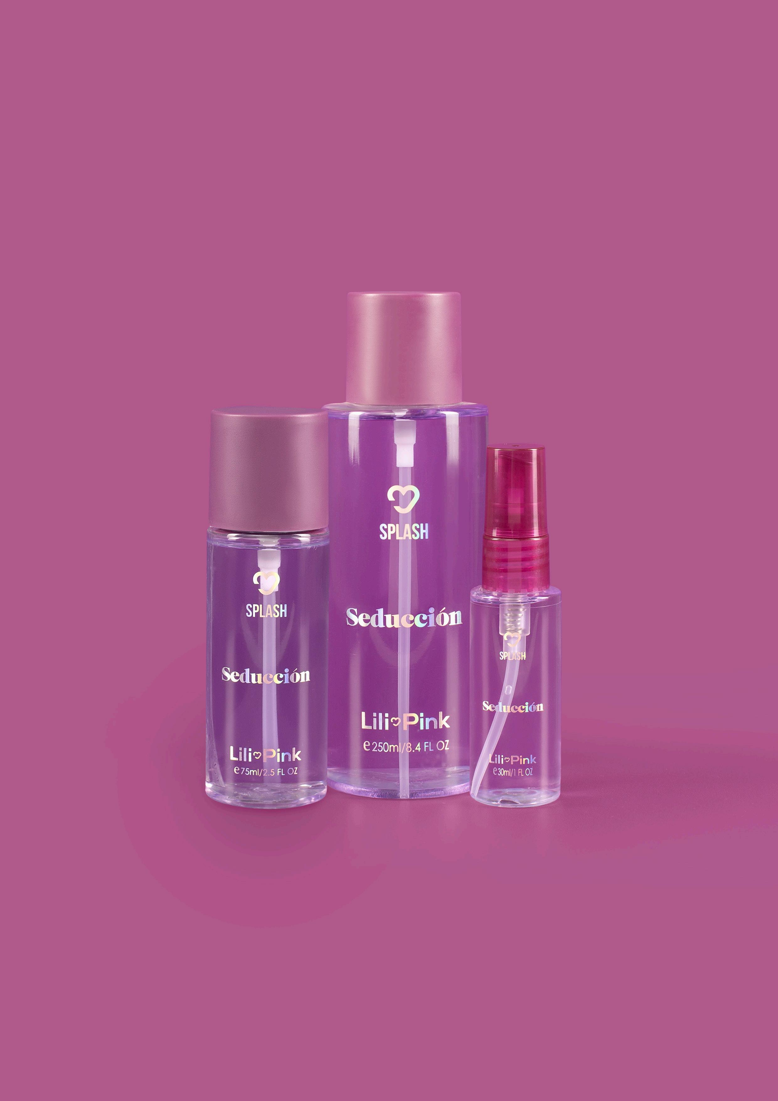 a Body splash Paraíso Rosa 75 ml Ref. BS-014 Q54 b Body splash Paraíso Rosa 250 ml Ref. BS-010 Q89 c