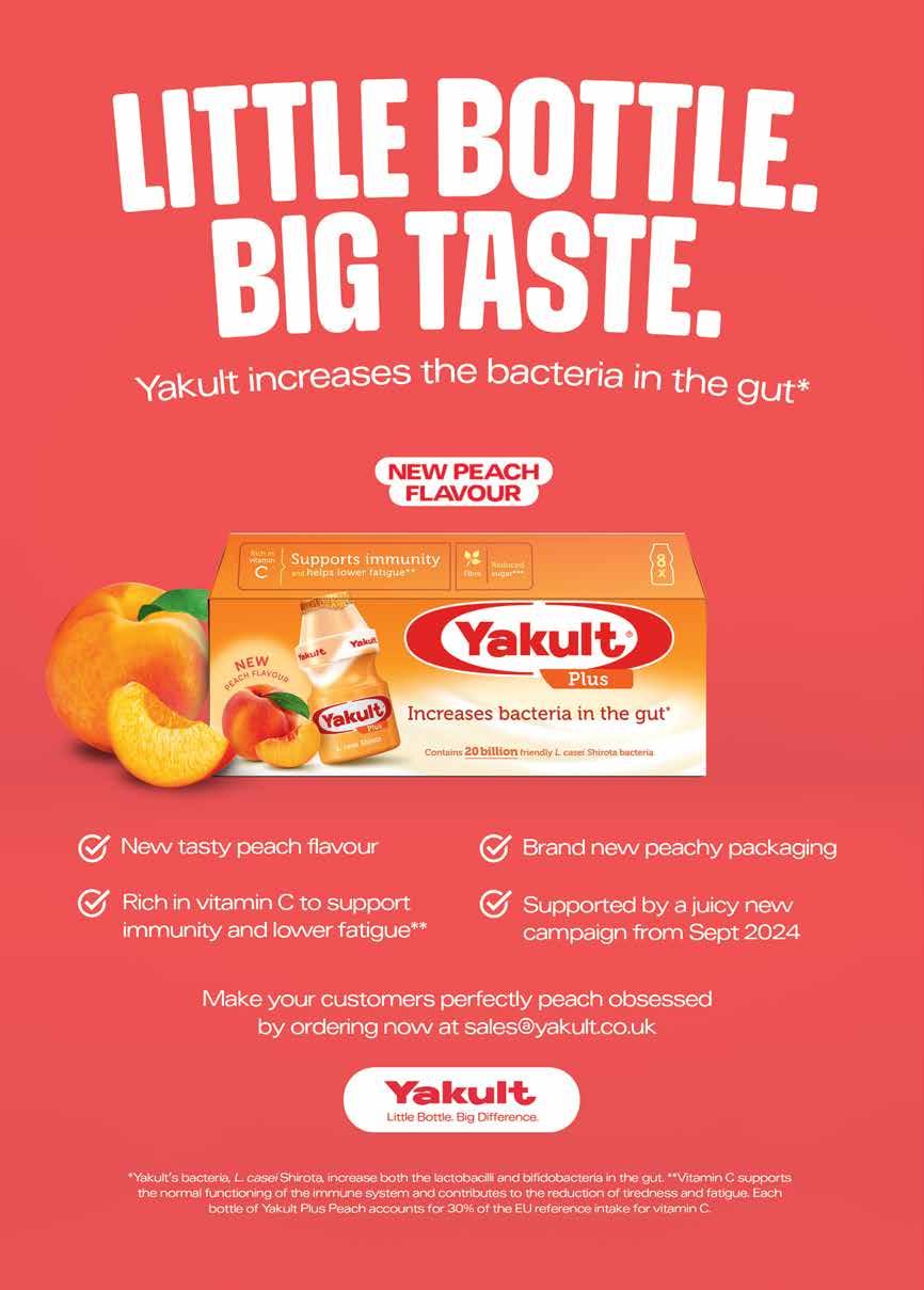 26 New Yakult Plus Peach is the latest addition to the popular range of fermented milk drinks.
