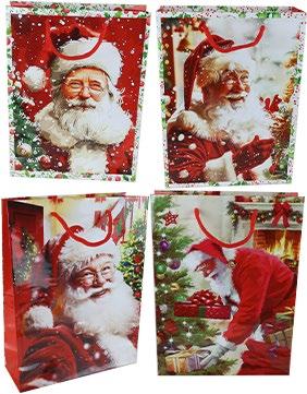 Sacola para presente de Natal Papai Noel 18x24x7cm 4 Modelos (S) pacote com 12 R$ 31,50 | SP-R$ 33,50