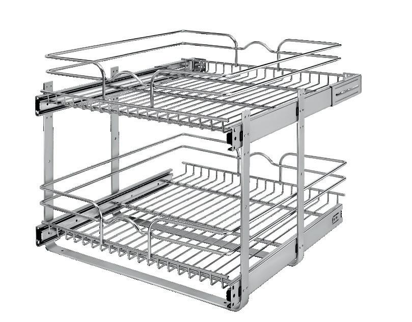 Wire Shelf w/ Soft-Close slides PRODUCT DESCRIPTION DIMS CAB FINISH 5730-12CR Pullout Wire Shelf 11-1/2 ” (293 mm) W x 21-3/4” (553 mm) D x 5-5/16” (135 mm) H B15 Chrome 5730-15CR Pullout Wire Shelf 14-1/2” (369 mm) W x 21-3/4” (553 mm) D x 5-5/16” (135 mm) H B18 Chrome 5730-21CR Pullout Wire Shelf 20-1/2” (521 mm) W x 21-3/4” (553 mm) D x 5-5/16” (135 mm) H B24 Chrome 5730-33CR Pullout Wire Shelf 32-1/2” (826mm) W x 21-3/4” (553 mm) D x 5-5/16” (135 mm) H B36 Chrome Accessories 5789CR Drop In Cookware Organizer 14-1/16” (358 mm) W x 9-1/2” (242 mm) D x 7-11/16” (196 mm) H Chrome