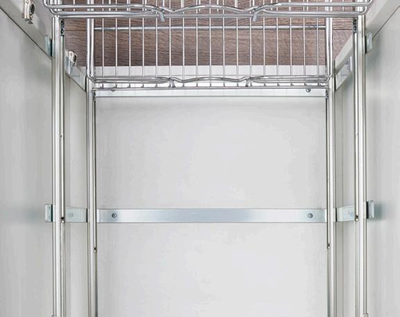 • Chrome-plated or powdercoated white round wire