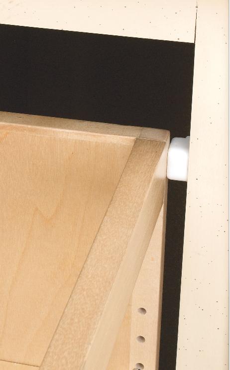• Mounts to cabinet side (face frame cabinets require spacers to flush sides to opening)