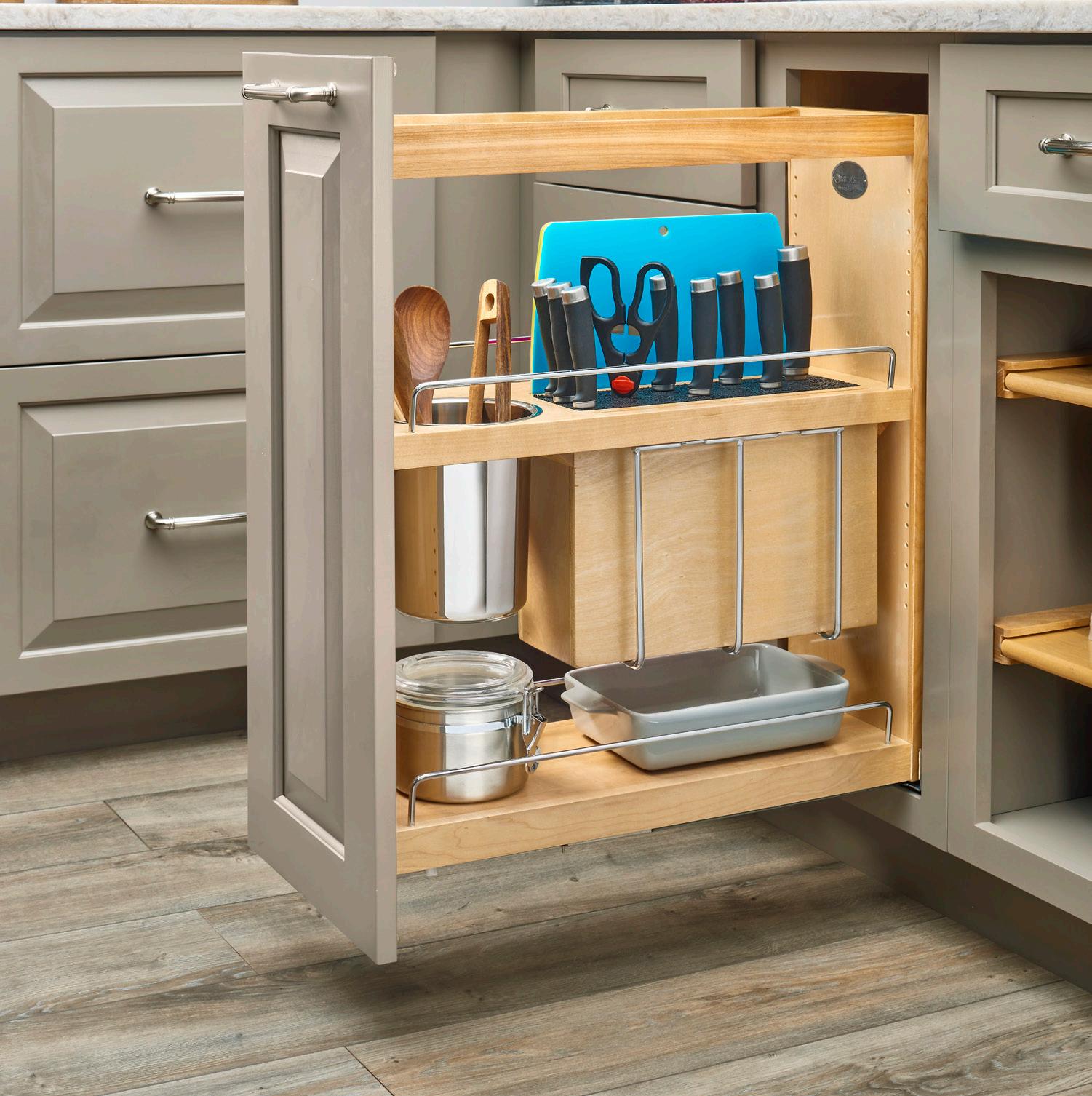 Most of our organizational solutions are designed for base cabinet applications, so you always have a versatile list of innovative products to choose from. From face frame to full access, rest assured we have the perfect product sized for your type of cabinet. These popular base cabinet accessories are designed with the same superior quality you have come to expect from Rev-A-Shelf ®