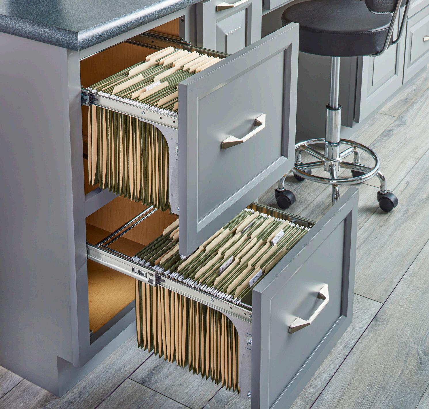 Designed for 22” depth or smaller base cabinet drawers existing drawer