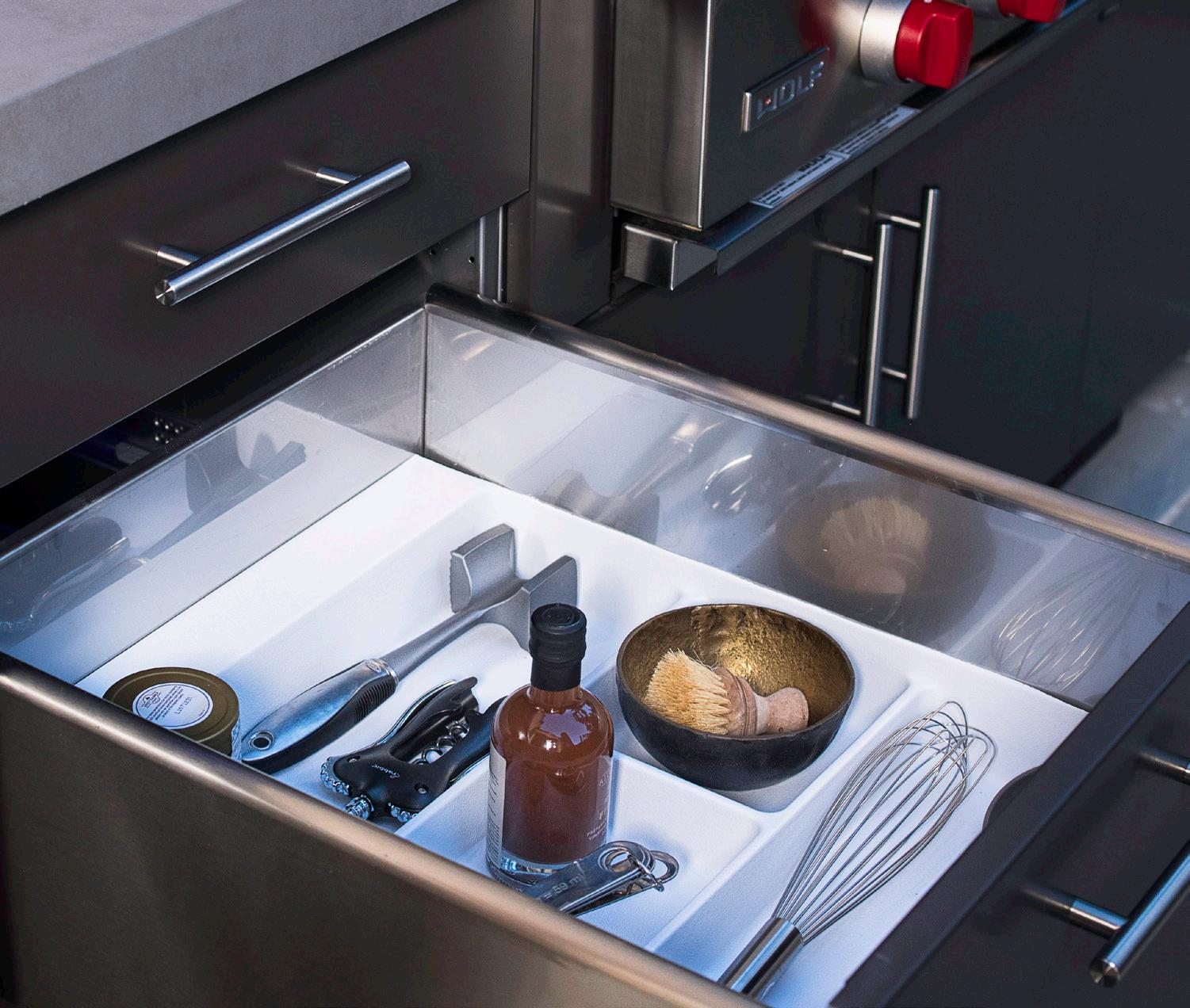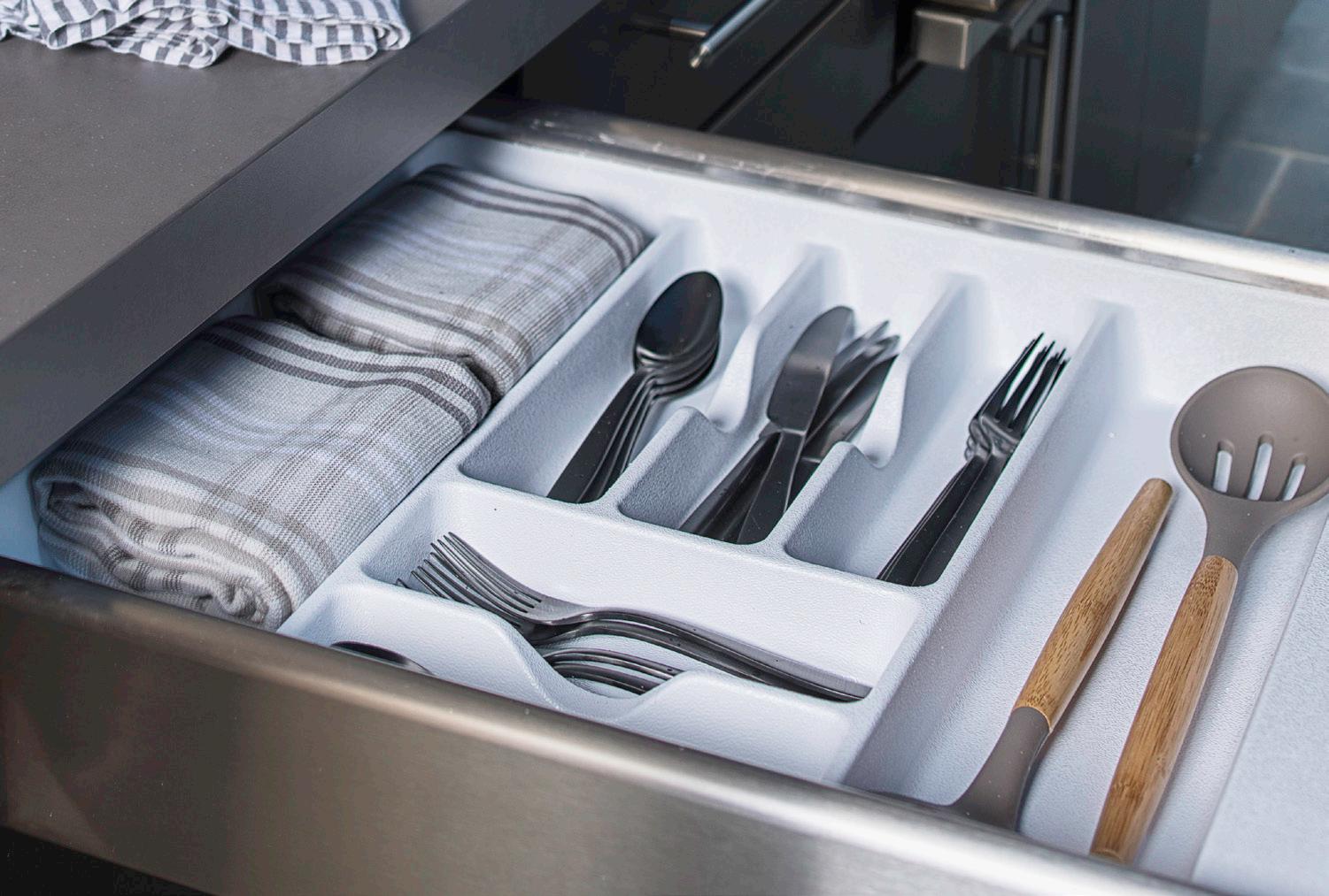 Create a clutter-free home with the inventive selection of drawer accessories from Rev-A-Shelf. Organizing is simple with great products like our cutlery trays, utensil trays and universal spice inserts. We’ve even found a way to expand the space in your drawer with our unique two-tier system for cookware, cutlery and cosmetics. From the kitchen to the bathroom, Rev-A -Shelf ® drawer accessories furnish unlimited storage solutions for every room in your home.
