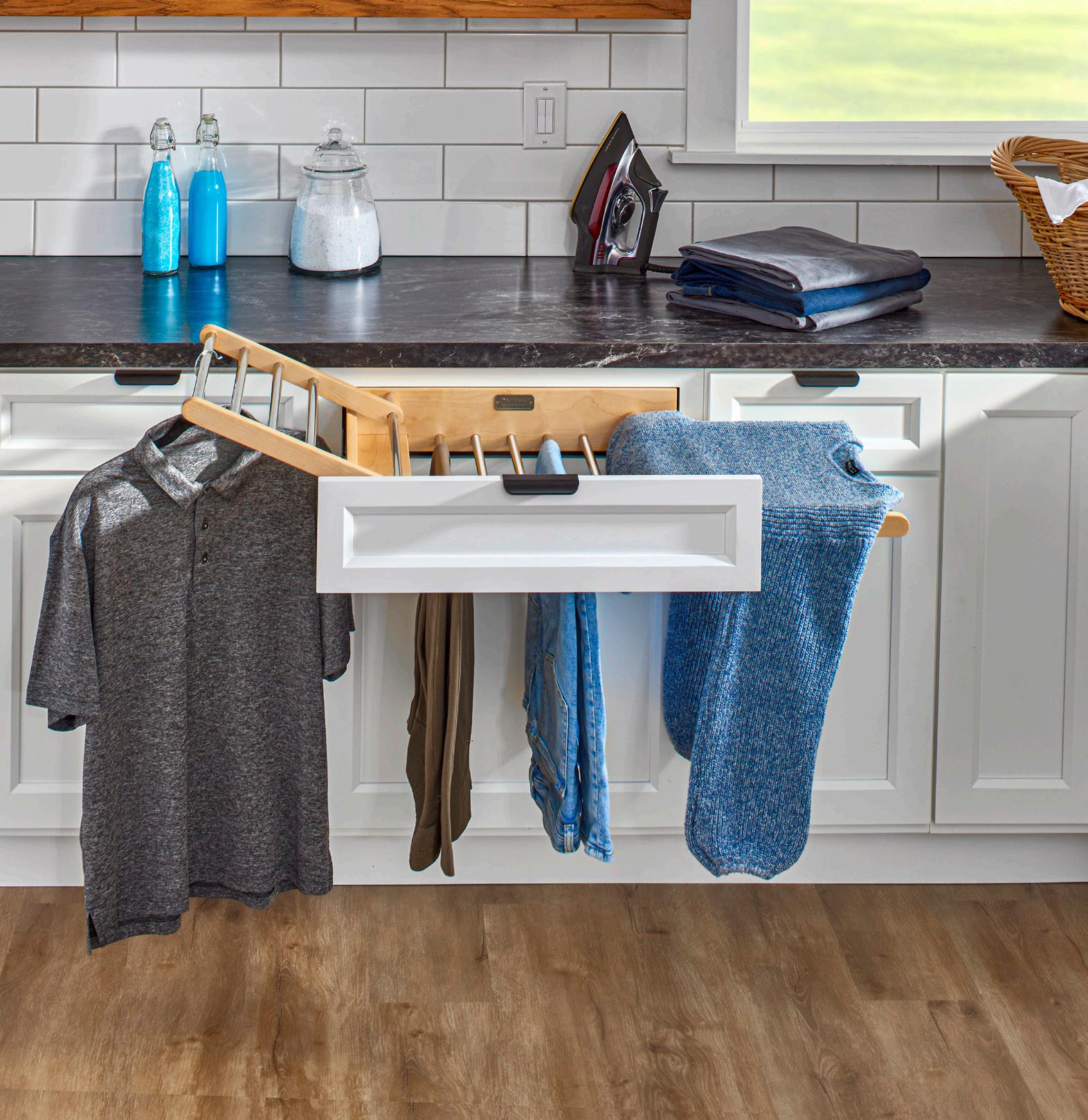 Do you need a drying solution for your laundry room? The 4WDR Series Drying Rack Drawer is one of the most sought-after solutions for flat or hang-to-dry clothing. The complete drawer system installs into your existing cabinet; you only need to attach your drawer front. This drying rack is easy to access and use: open the drawer and unfold the arms for extra drying space! With two positions of placement, you can flat or hang dry items on the rust-resistant stainless-steel rods.