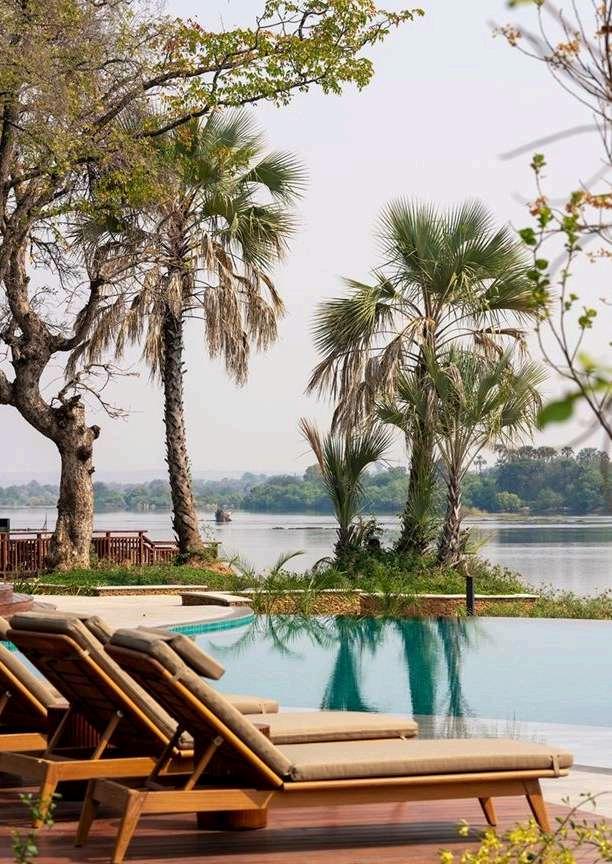 The resort's design thoughtfully integrates modern elegance with subtle touches inspired by its vibrant African surroundings Guests are welcomed into spacious and stylish interiors that exude a sense of refined comfort and understated luxury. The architecture is strategically designed to maximize views of the mighty Zambezi, with expansive windows and open-plan areas that allow the breathtaking beauty of the river and its diverse wildlife to become an integral part of the guest experience. The meticulously maintained grounds, often frequented by local wildlife like zebras and impalas grazing peacefully, further enhance the sense of being deeply immersed in nature