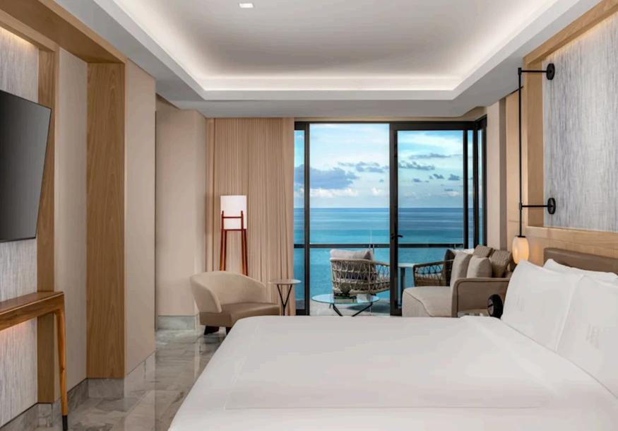Accommodation is designed to immerse visitors in the landscape Each of the resort’s rooms and suites faces the water, opening onto a private balcony complete with a soaking tub overlooking the shoreline Morning begins with the sound of waves and the glow of the Caribbean horizon, while evenings are marked by gentle breezes and starlit skies. The design balances elegance and comfort, allowing the setting itself to remain the focal point