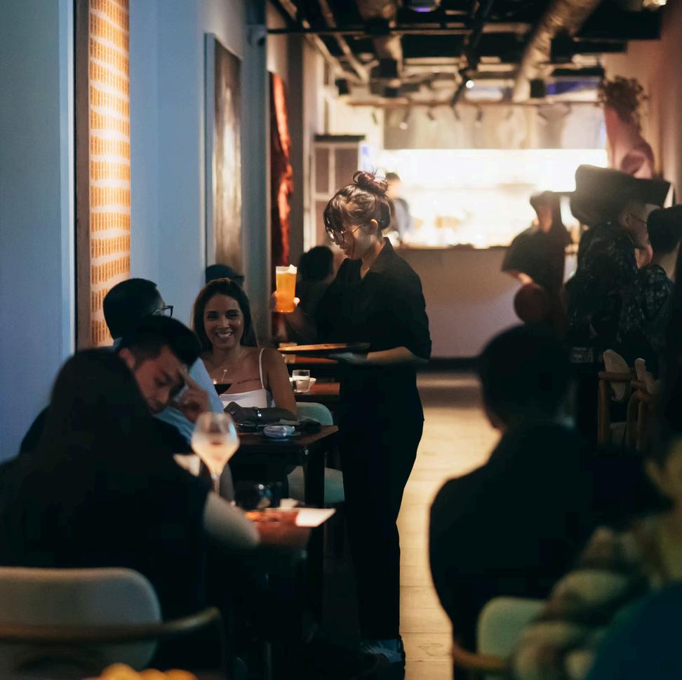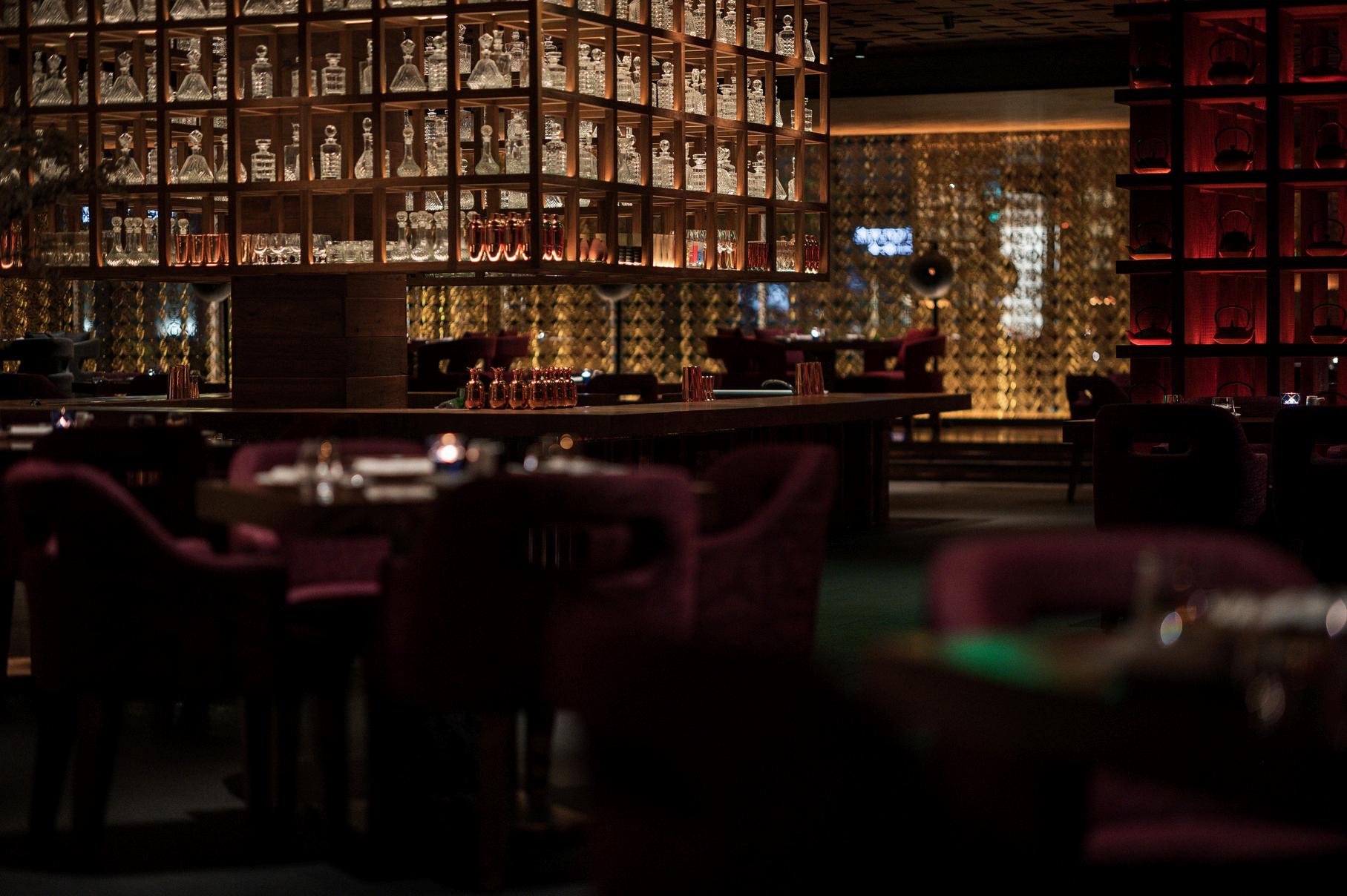 Music and lighting enhance the mood, creating a relaxed but lively atmosphere that evolves as the evening progresses. The cocktail bar and lounge seating areas invite guests to linger, whether beginning the night with drinks or continuing long after dinner. Service remains attentive and intuitive, delivered with a sense of hospitality that feels personal rather than structured.