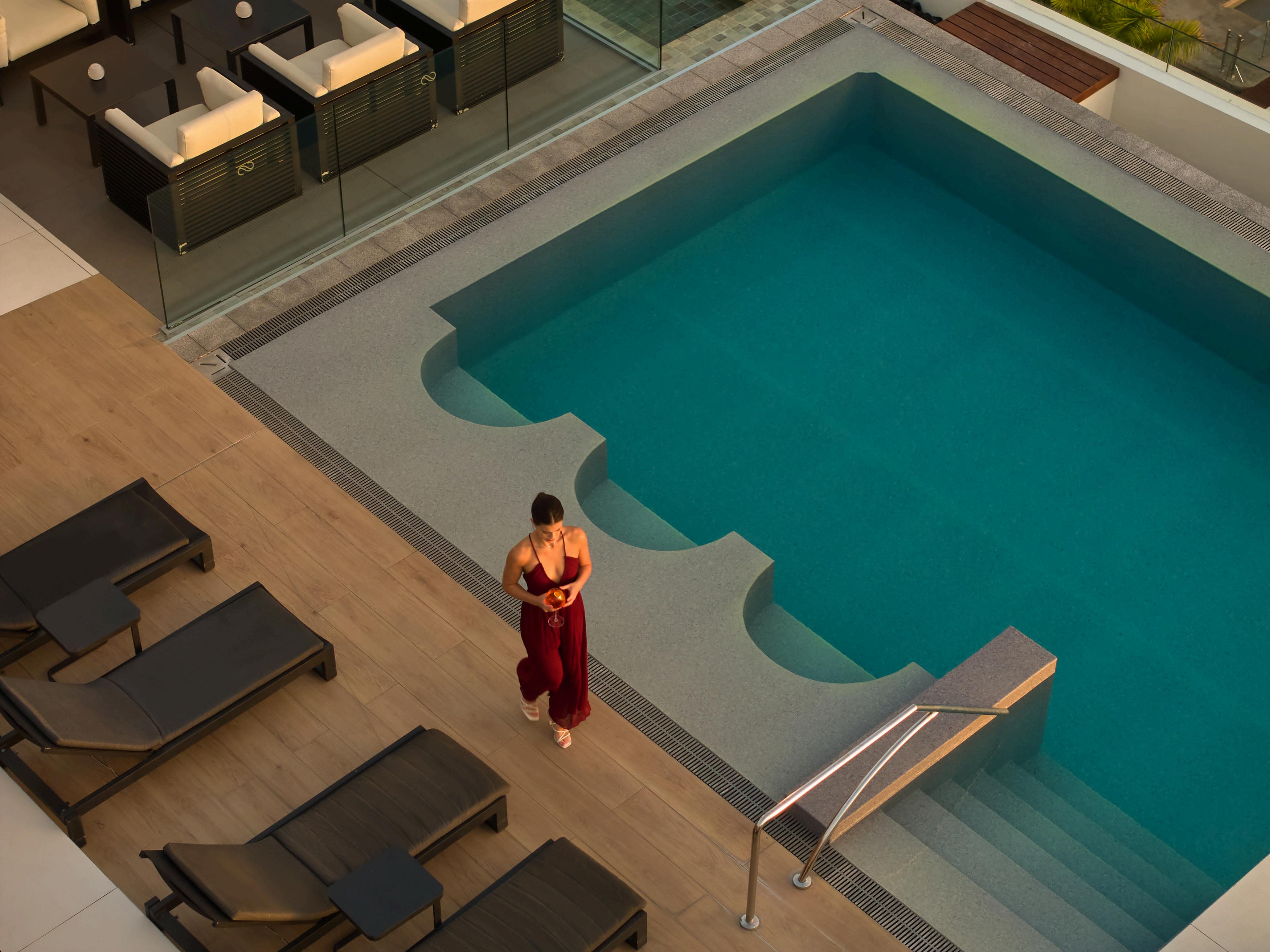 Wellness forms another important part of the stay. A dedicated lifestyle floor includes a fitness centre, spa and relaxation areas, offering restorative treatments and quiet spaces above the busy streets below. Guests may unwind with a spa experience, enjoy the open air pool or simply pause to watch the sunset over the skyline.