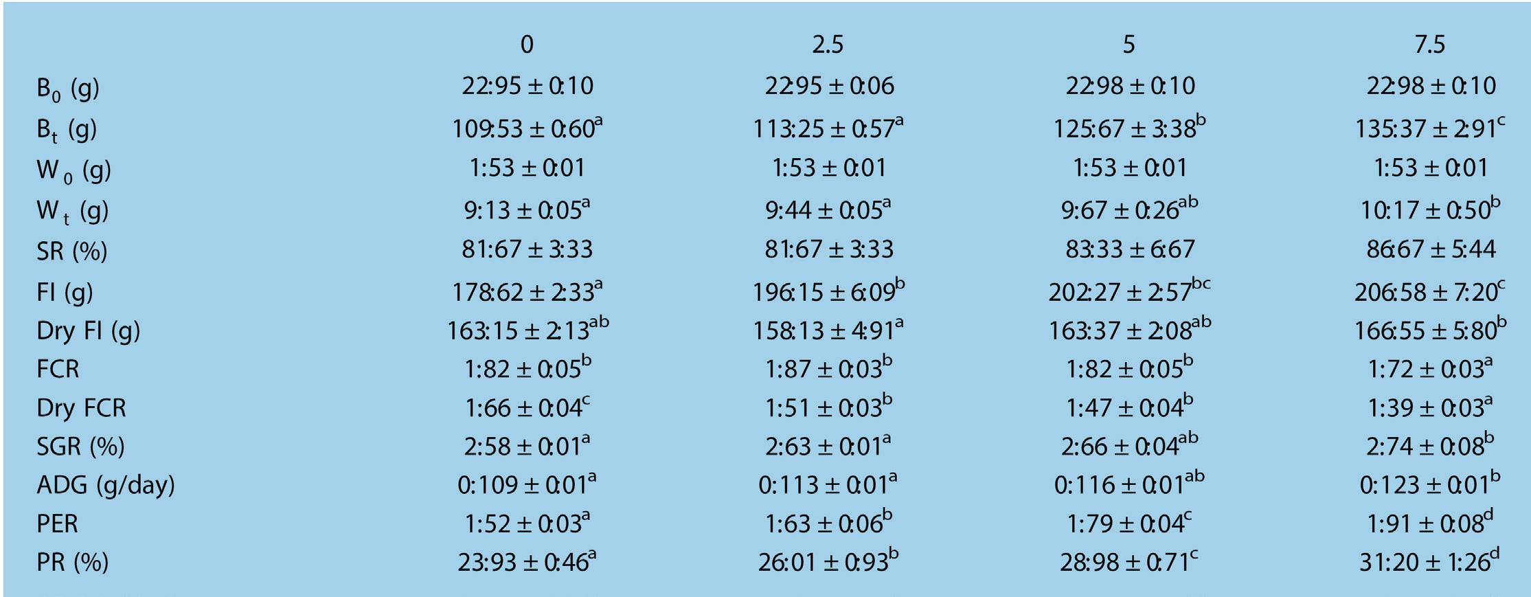 Rendimiento de Litopenaeus vannamei a diferentes niveles de ingesta diaria de proteína y proporciones de carbohidrato/proteína en alimentos formulados con bajo contenido de harina de pescado