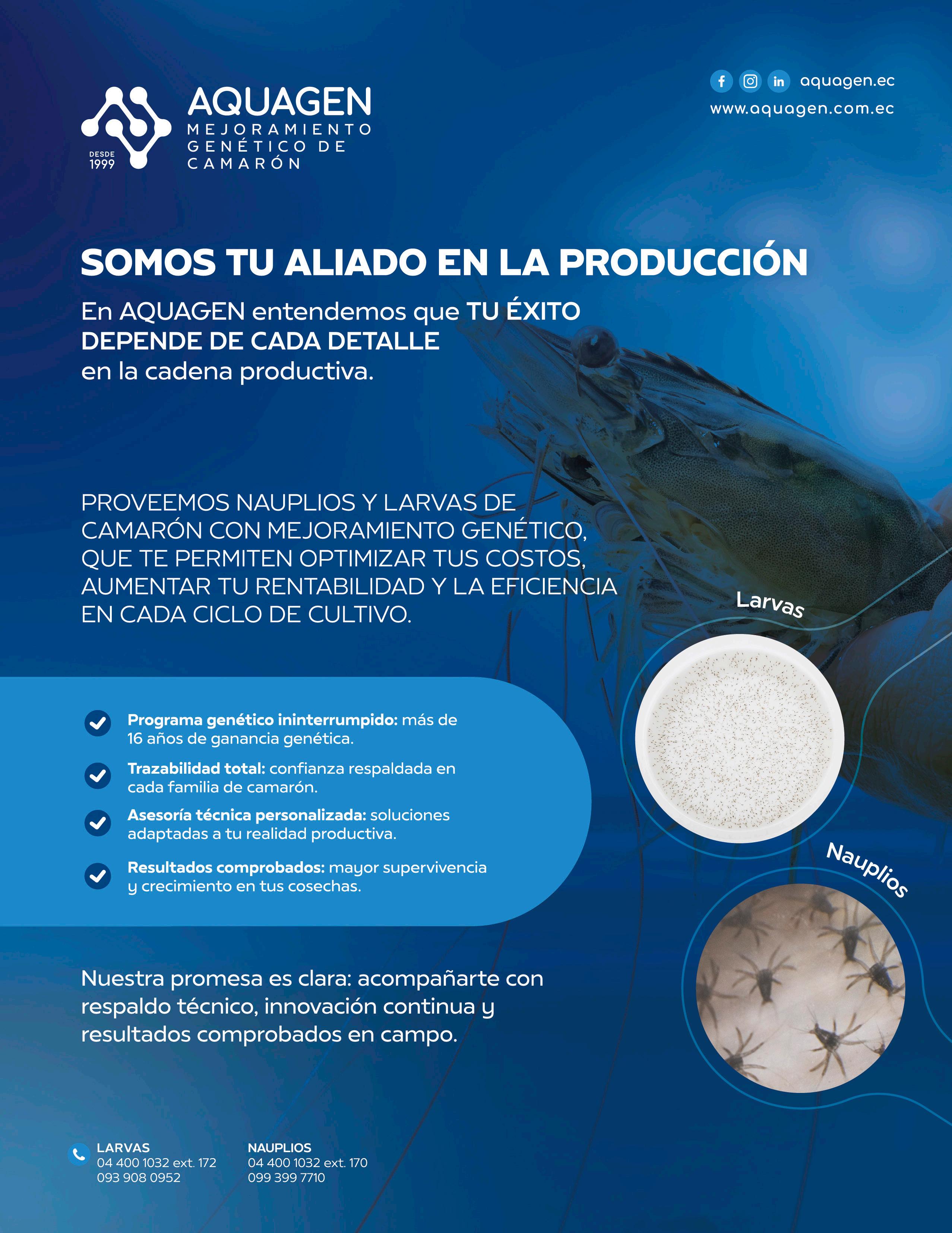 Con esta alianza, el sector acuícola avanza hacia soluciones de producción más diversificadas y sostenibles, fortaleciendo la competitividad del camarón ecuatoriano en mercados internacionales.