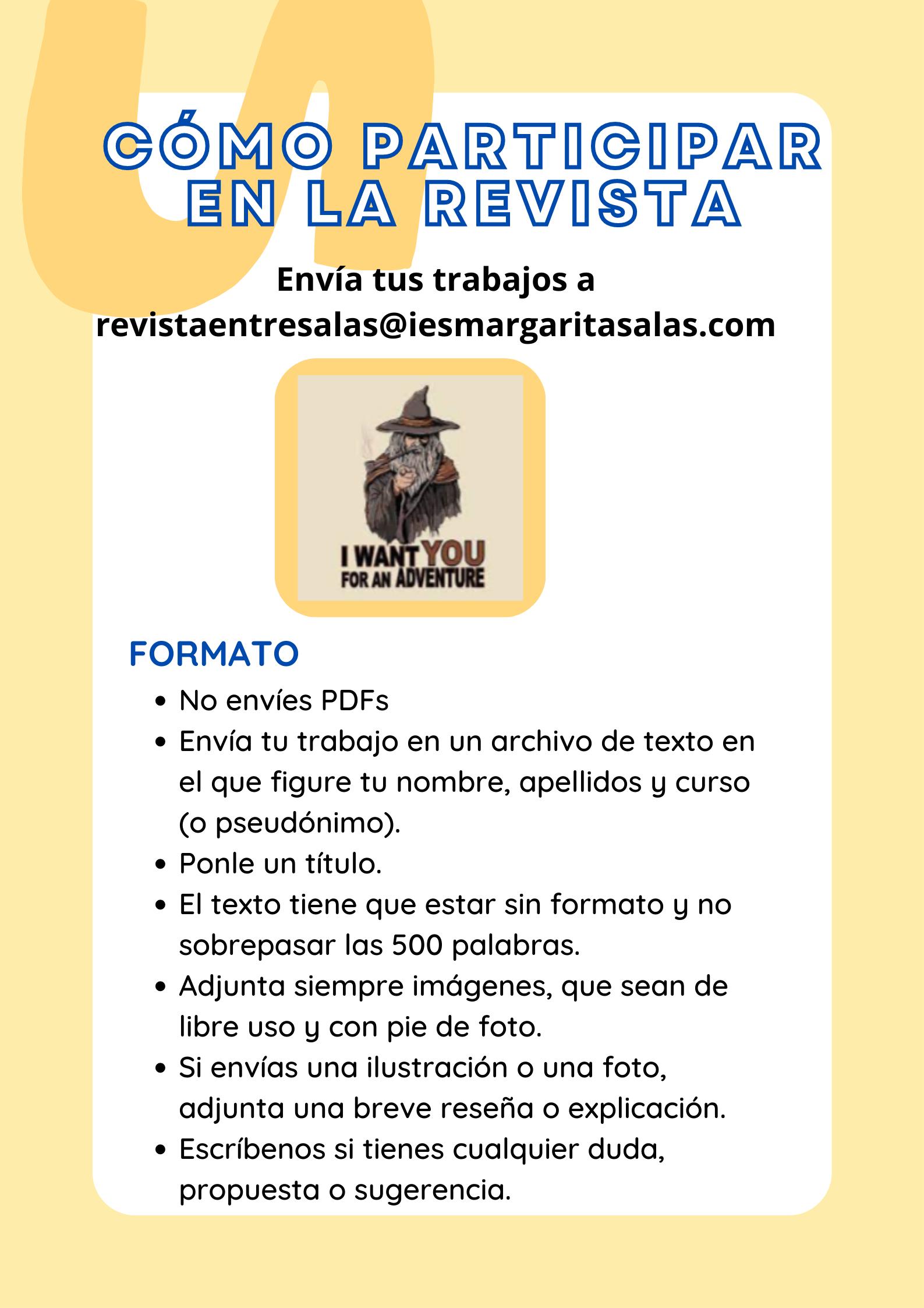 Comenzamos una nueva andadura de nuestra revista escolar Entresalas. Renace gracias al esfuerzo e ilusión de un grupo de dieciséis alumnos y profesores y aspira a convertirse en un espacio creativo para la reflexión, la participación y el diálogo.