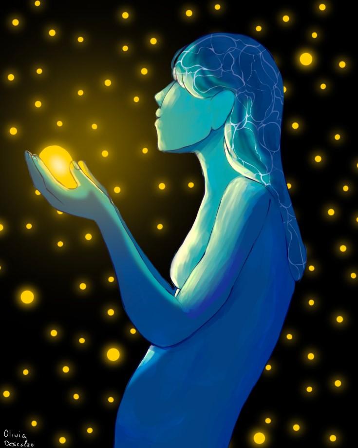 "La mujer y el agua están más relacionadas de lo que se piensa. Ambas son capaces de crear vida y eso es lo que he querido reflejar en la ilustración. En el dibujo podemos ver a una mujer de agua creando vida y a la vez observando la vida que han creado otras mujeres."