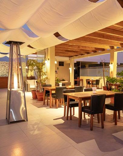 del hotel para disfrutar de un café y el atardecer. Inspirado por los recuerdos y las vivencias en Ica, creó un espacio que captura la esencia de la naturaleza con plantas decorativas y hierbas aromáticas, así como la tradición familiar en homenaje a su abuelo materno, Don Miguel, conocido como Tatá. Este restaurante se distingue por su cocina relacionada directamente con el fuego, las brasas y el humo. Utilizando productos locales, Tatá ofrece una propuesta innovadora en Ica. Entre los platos estrella se encuentran el tartare de trucha, pulled pork sandwich, arroz negro a la leña, pizza tartufo y la tarta de quesos andinos. Además, cuentan con una coctelería de autor que se compone por Yogui Bei, Tío Pepe y Negroni Tatá