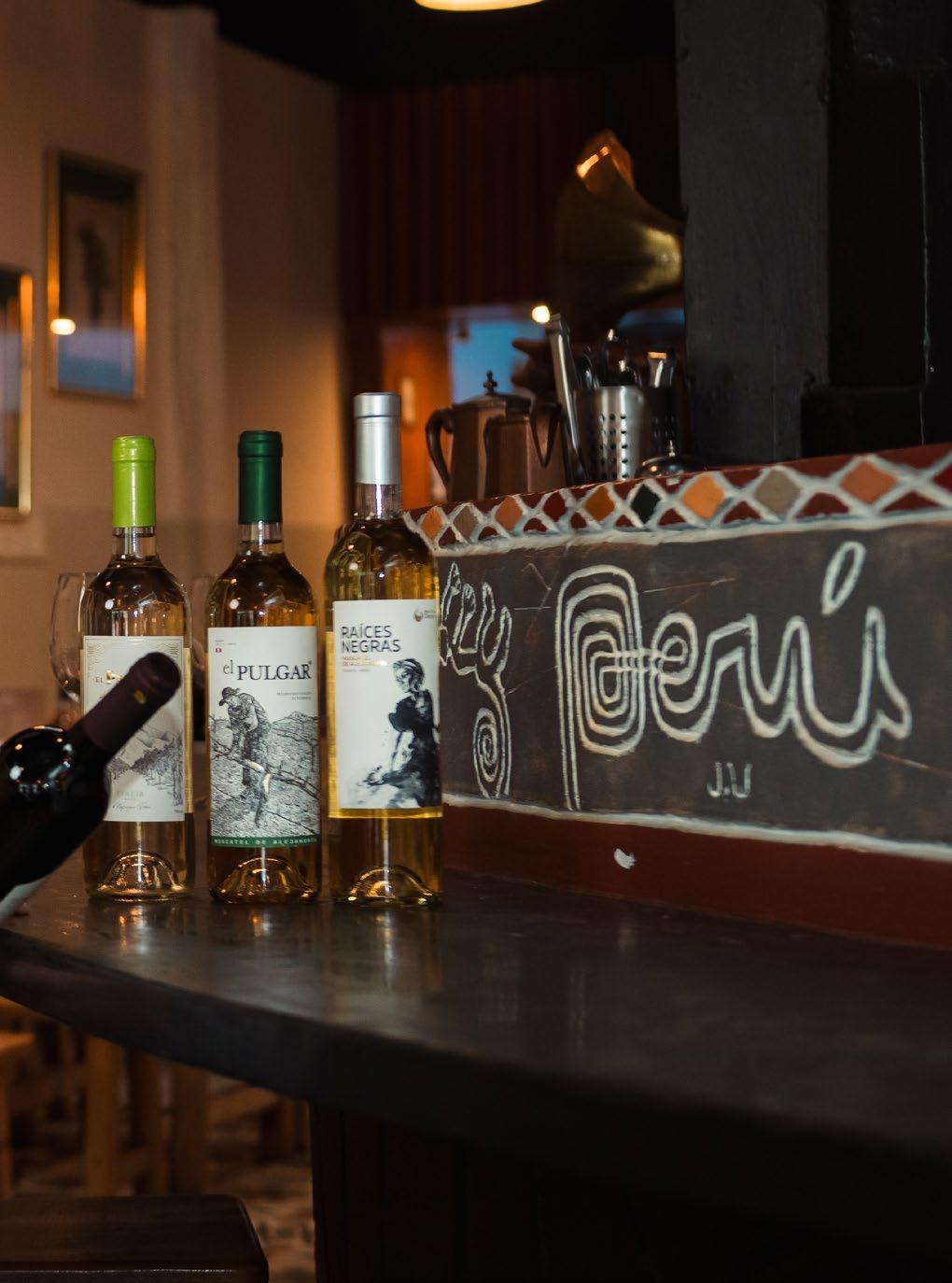cer buenos vinos. Es interesante lo que hacen en todo el país con sus vides autóctonas (patrimoniales). No hay que forzar una variedad, sino entenderla como instrumento para llegar al objetivo. Este es un trabajo que inicia de cero, pero con el apoyo necesario van a conseguir avanzar. Se necesita de quienes gusten invertir y se tomen el tiempo de apreciar el producto», asegura. «Si tengo que nombrar mis favoritos me quedo con el Blanco Patrimonial de Pampas de Ica, Moscatel de Alejandría de Raíces Negras,