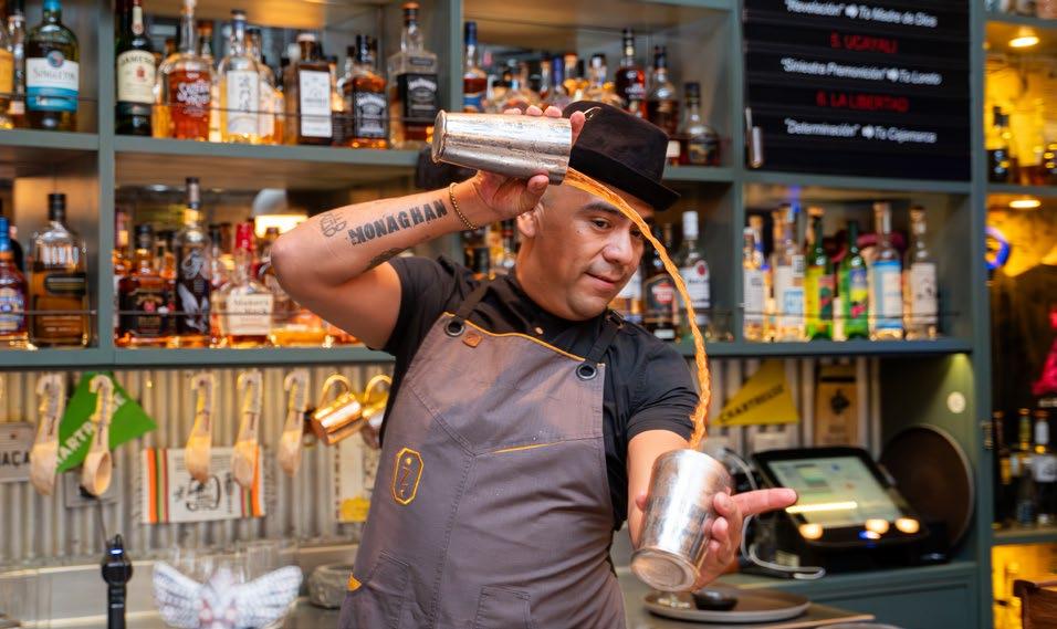 dad en el rubro. «Vivimos en un mundo muy acelerado, donde no nos damos el tiempo de disfrutar. Queremos que los bares sigan siendo un punto de desconexión. El servicio es importante y me encanta que Perú se siga reconociendo como uno de los lugares más hospitalarios del mundo. Joshua es reconocido por ello y, desde Bacardí, siendo una marca de familia, consideramos que va con nuestro lineamiento», explica Nicolás. Joshua también compartió en la barra de Carnaval, bar integrante de los 50 World Best Bars, y realizó cócteles con Bacardí, Bombay Sapphire, Patrón y Grey Goose.