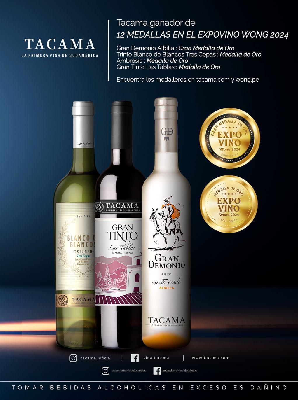 Tacama brilla en el Expovino Wong 2024 con diversas etiquetas de su portafolio de vinos y piscos. Aquí le damos reconocimiento a su impecable trabajo.