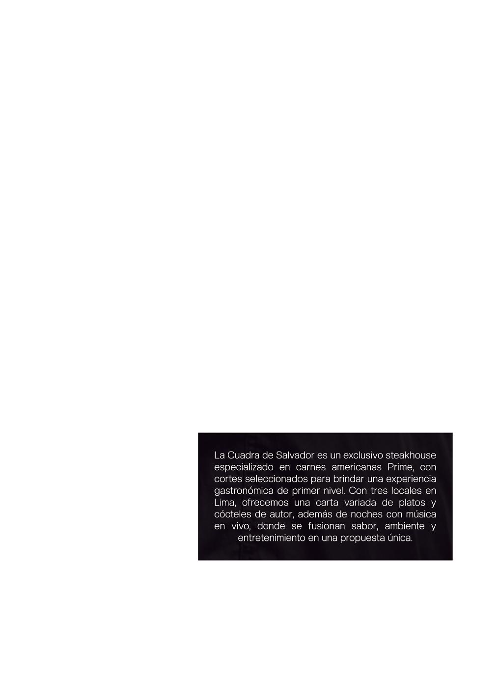 Esta nueva carta resume un collage de todo: madurez y visión. El espacio para la cocina ha cobrado protagonismo sólido. Hay comensales que cenan allí y dejan que la noche los atornille con sus cócteles. Faena completa. Entre sus ases están un delicioso cochinillo al kamsay con puré de loche y camote, la ya famosa colita de cuadril angus con papas nativas, los capelli de lomo en su jugo, por soltar algunos platos. Pero allí no queda todo, pues fueron un poco más allá con los postres. Un creme brulee (capricho de la infancia de Macedo), y un cremoso de vainilla al Campari y frutos rojos. Una quemada de cerebro brutal con este manjar. Por este plus culinario, considero personalmente