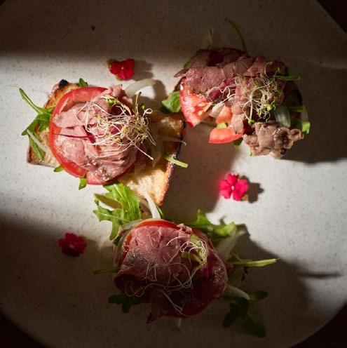 coctelería, acoge lo floral y afrutado. Odette me recordó a una de mis películas favoritas de todos los tiempos. Una genialidad llevada al cine por Darren Aronofsky, El Cisne Negro. Esta alegoría al lago de los cisnes connota y denota a un cisne blanco líquido. Ideal para los paladares sofisticados, el cual lleva pisco Italia, piña golden, vino blanco, lychee, jarabe simple y limón tahití. Podemos acompañar estos cócteles de algunos piqueos que también van en carta. Recomiendo las empanadas chinas de cerdo y langostino al vapor con salsa oriental y ensalada de arúgula; así como tostadas de Roast Beef servidas con tomate, cebolla blanca y arúgula.