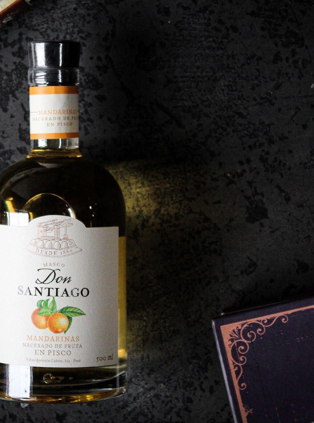 Una sugerencia adicional que les proponemos es que enfríen la botella en el freezer por media hora. Primero, beban un pequeño sorbo del pisco que estará algo denso producto del frío. Al ingresar a la boca y por el choque de las temperaturas opuestas todas sus virtudes resaltarán mucho más. Luego sírvanse un trocito de turrón y beban otro pequeño sorbo de pisco. Para los paladares más golosos, sugerimos acompañar el turrón con nuestro macerado de mandarinas Don Santiago. Este licor tiene como base el pisco de Quebranta que se macera con mandarinas de las variedades Clementina y Murcott, las cuales provienen de varios fundos de Ica. Con 27° de alcohol, irá excelente con el turrón, resaltando sus virtudes cítricas y estableciendo el puente entre los sabores cítricos del macerado y la miel del turrón. Un final feliz para el almuerzo dominguero o para la hora del lonchecito.