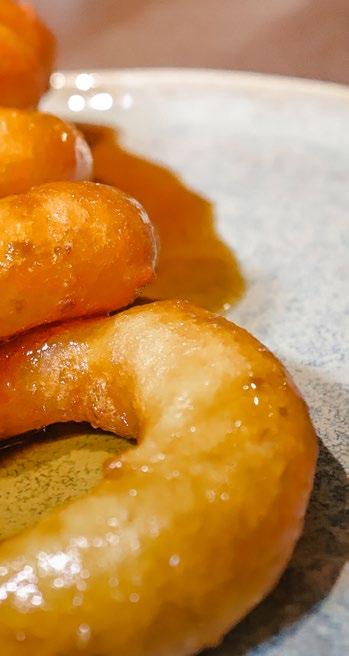 porción de arroz con choclo. Para finalizar, atrévete a pedir uno de los postres nacionales emblemáticos. Los picarones son crujientes aros dorados elaborados con la dulzura natural del zapallo macre. Cada picarón, esponjoso por dentro y delicadamente crujiente por fuera, emerge de las ollas de la cocina del chef. Se sirve coronado con una cascada de miel de chancaca artesanal, perfumada con hojas de higo y cáscaras de naranja que captura la esencia de la Lima antigua desde el primer mordisco.