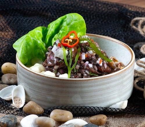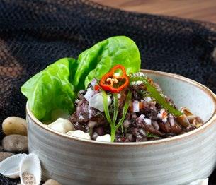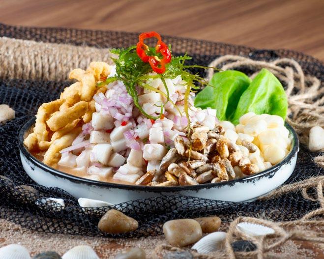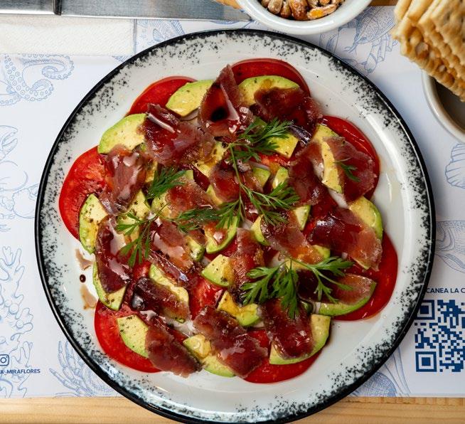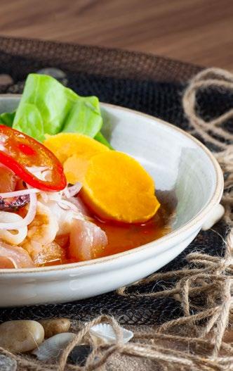 previo de un plato o bebida. Angel decide arriesgar con Muchame de Bonito, una apuesta que es propia de Callao (con delfín) y que, sinceramente, no había visto antes. Este «mix de cura» se compone de bonito curado, palta, tomate, balsámico, aceite de oliva y ajo. Debes comerlo con galletas de soda, tal como se hacía en antaño. En líneas generales, la carta tiene entradas que fluyen con esta propuesta local: sánguches de pejerrey, tiraditos, los ceviches clásicos, carretilleros, de pota, conchas negras y el mítico Llauca que es la bandera del restaurante.