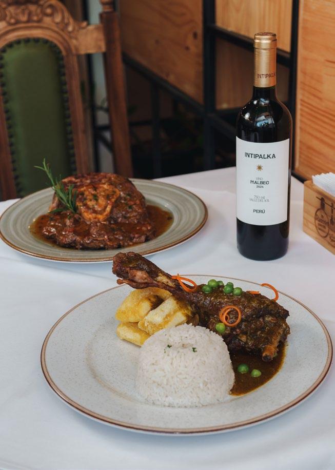 llevan trabajando desde hace 15 años. Por ello, los maridajes en esta ocasión fueron con su Pisco Intipalka Quebranta y el vino Intipalka Malbec. «Lo que me gusta de la marca es que promueven la tradición familiar. Considero que la calidad de sus vinos ha mejorado mucho», asegura. Comenzamos la experiencia con una causa de langostinos bañada de salsa golf, muy adaptada a las tendencias gourmet de hoy. Fue perfecto con un Pisco Sour de Quebranta, un clásico. Un pisco de buena estructura, suave, con notas a nueces y fruta pasa.