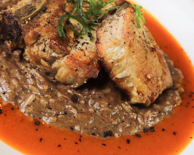 Para cerrar, llega un plato que resume la filosofía del bistró: Pancetta con Risotto de Funghi. Un fondo profundo, donde la panceta sellada aporta grasitud