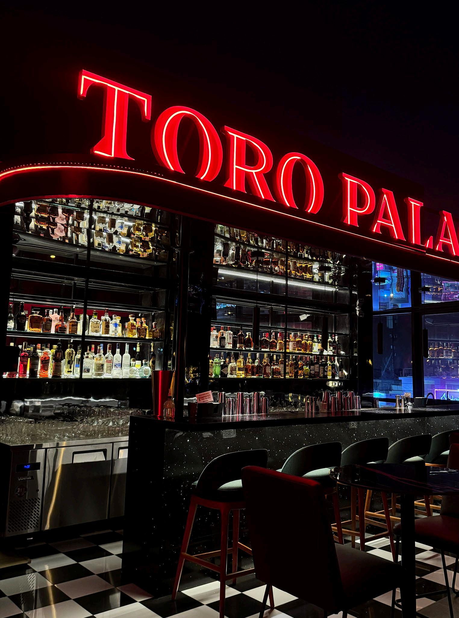 Dos conceptos, dos atmósferas Toro Palace no es un solo bar: reúne dos experiencias completamente distintas bajo un mismo concepto. El salón del tercer nivel es la versión sobria y elegante; el rooftop del quinto nivel, en cambio, es una interpretación más vibrante, inspirado en las vivencias de los dueños en Argentina.