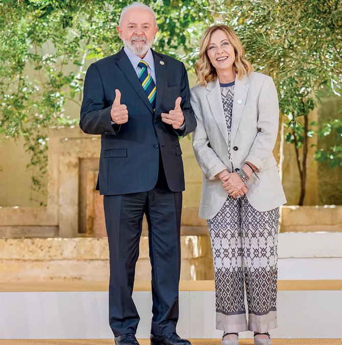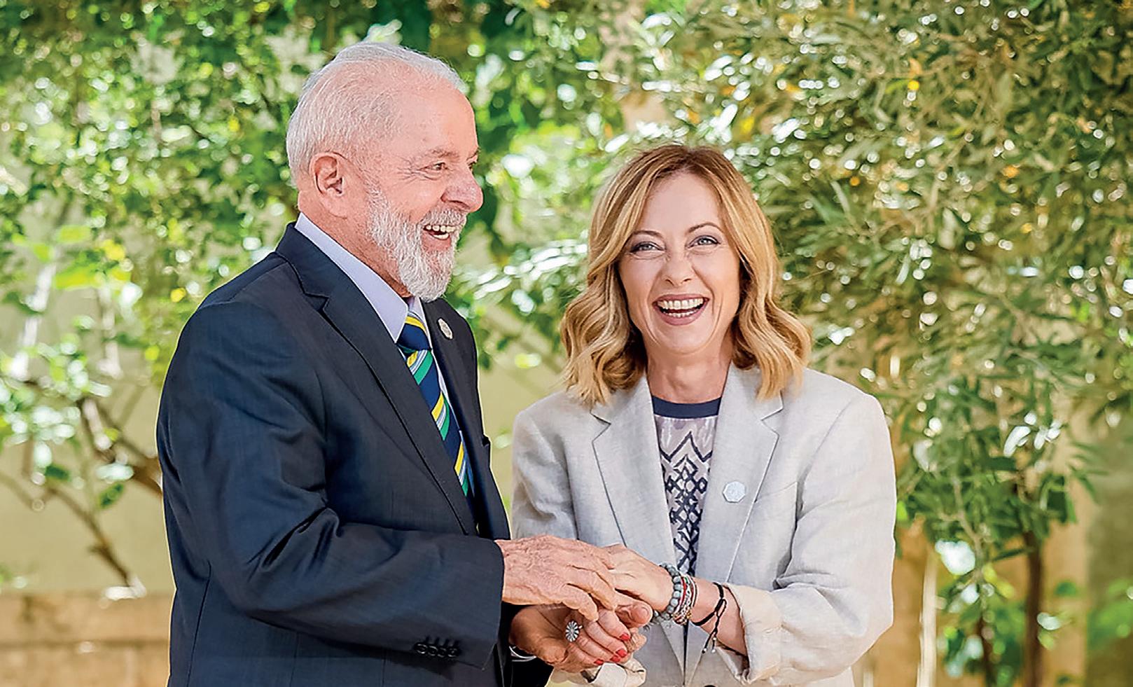 O presidente Luiz Inácio Lula da Silva foi à Itália para participar de encontro do G7 (grupo composto por Alemanha, Canadá, Estados Unidos, França, Itália, Japão e Reino Unido), após convite da primeira-ministra italiana, Giorgia Meloni. Ele também participou de reuniões bilaterais com o Papa Francisco e lideranças internacionais.