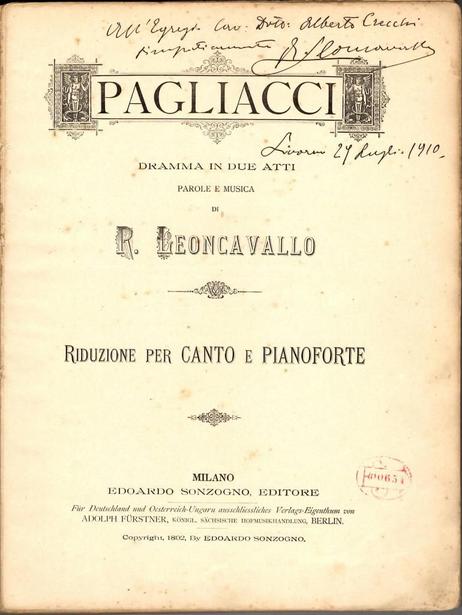 En 1892, Leoncavallo presentó Pagliaccio (así se llamó originalmente la obra) en el concurso de la casa editora musical Sonzogno, para ser recordado por una sola y primera ópera, un triunfo inicial que ya nunca repetiría. Napolitano, hijo de juez y de ahijada de Donizetti. Antes de alcanzar el resonante triunfo universal que significó Pagliacci, la vida de Leoncavallo no carece de anécdotas. Desde niño mostró cualidades para la música, ingresando al conservatorio a los ocho años, interés que continuó de manera autodidacta luego fue abogado y finalizada la carrera, tomó estudios literarios con Giosue Carducci Luego viajó con un tío suyo a Egipto