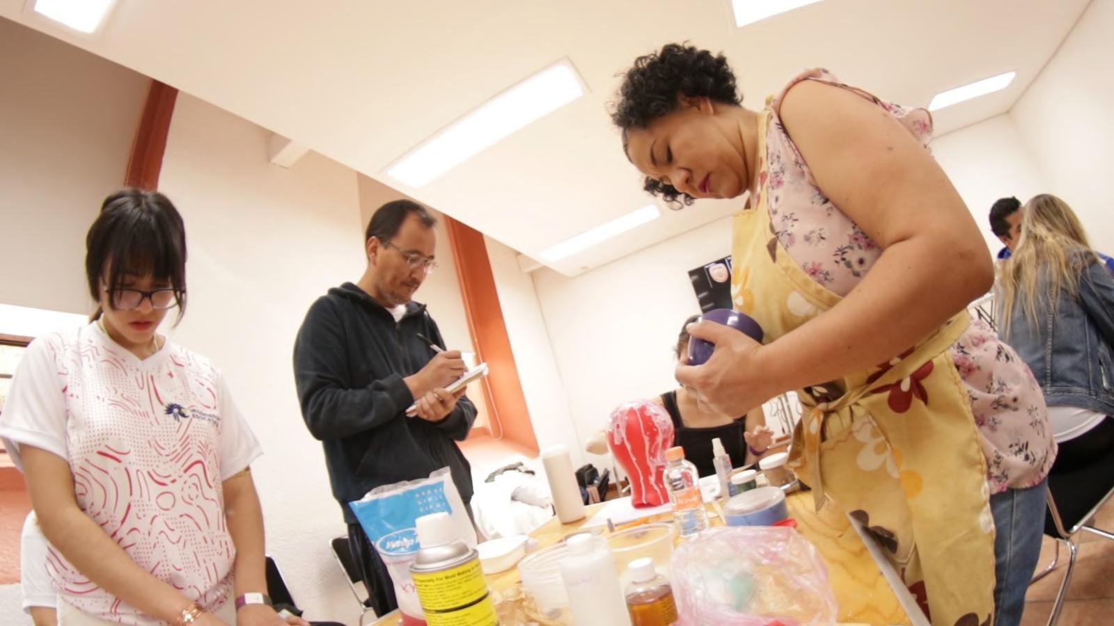 Los participantes pudieron practicar las técnicas del maquillaje orientado a los efectos especiales, donde la simulación de heridas es una caracterización muy común en el cine , por ende con elementos muy sencillos pudieron perfeccionar sus técnicas para llevar el maquillaje a nuevos niveles de experiencia