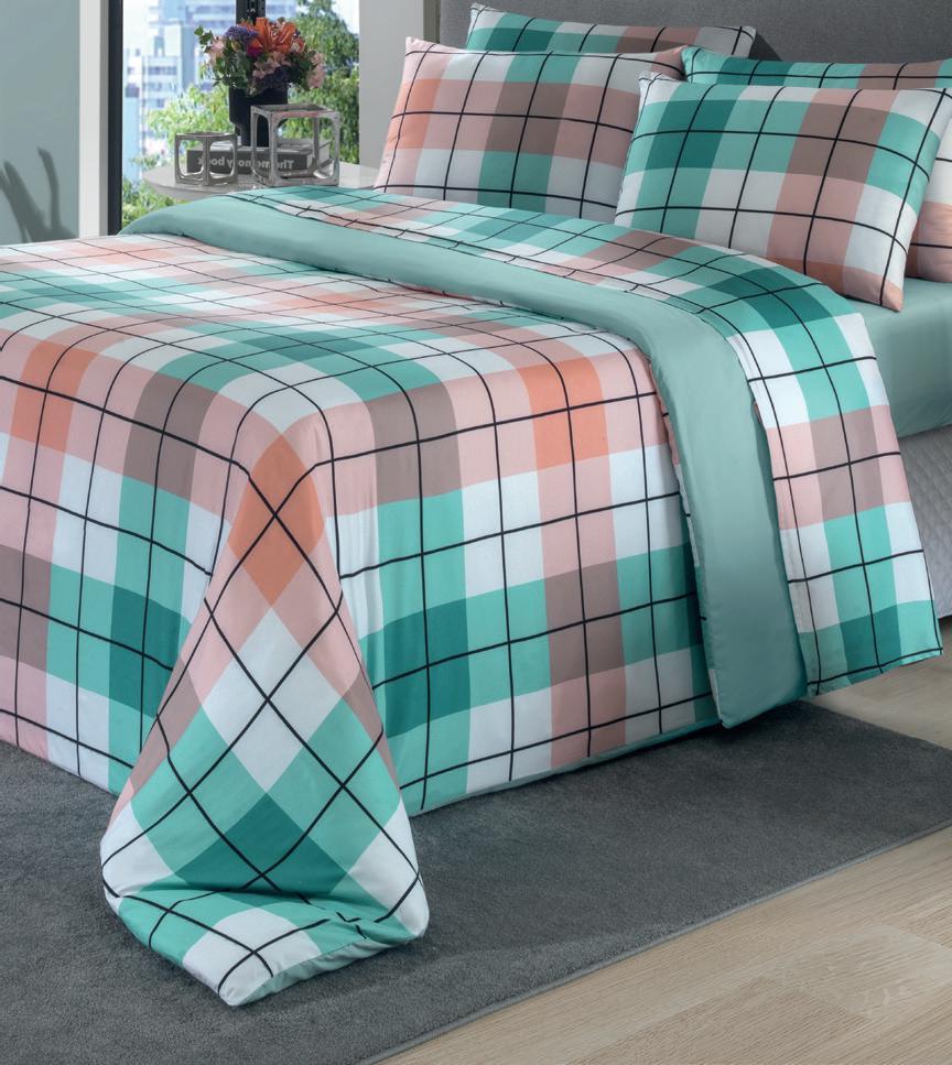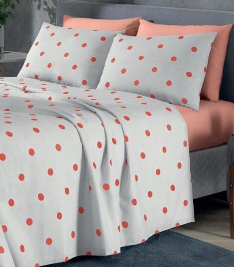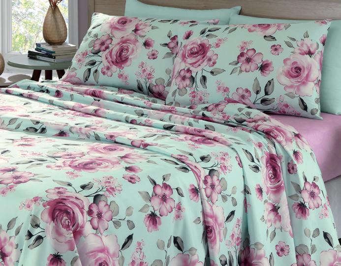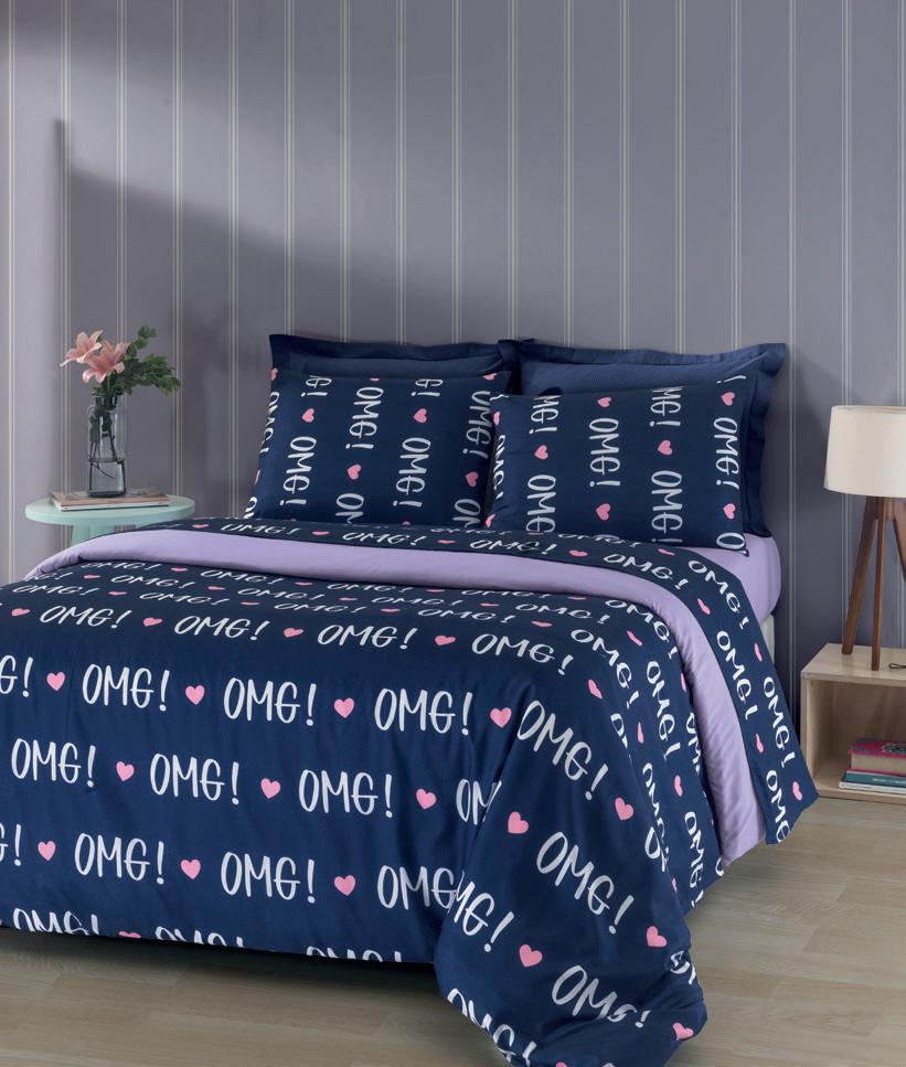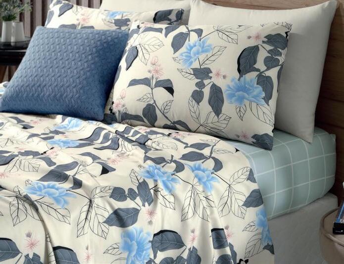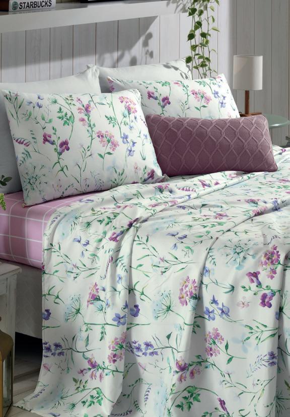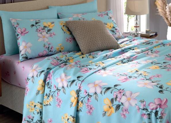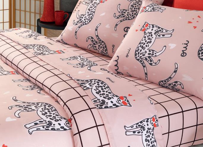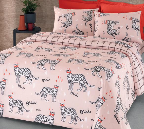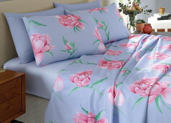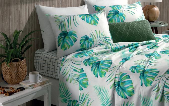 Com 1 sobre lençol estampado (250x280 cm), 1 lençol liso com elástico (193x198x38 cm) e 2 fronhas estampadas (50x70 cm cada). Cód.: 6.228.352