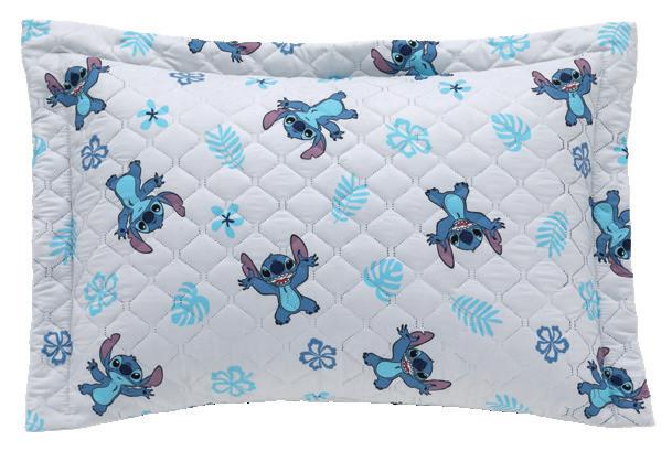 1. Jogo de Cama Solteiro. Com 1 sobre lençol estampado (160x240 cm), 1 lençol estampado com elástico (88x188x30 cm) e 1 fronha estampada (50x70 cm).