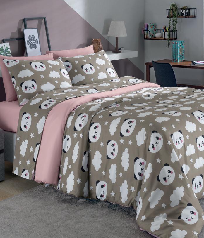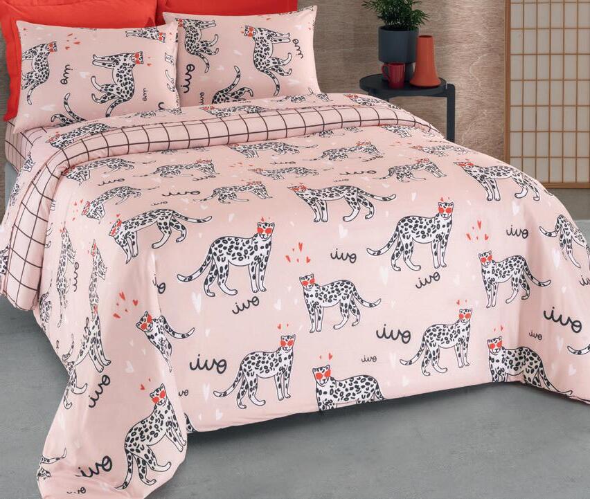 Com 1 sobre lençol estampado (250x280 cm), 1 lençol liso com elástico (193x198x38 cm) e 2 fronhas estampadas (50x70 cm cada).