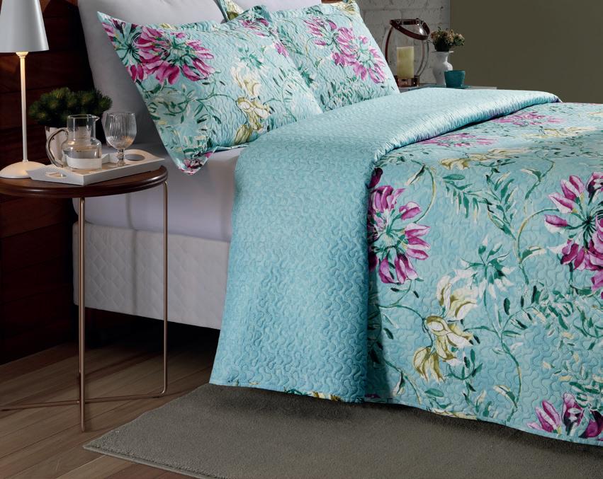 9. Jogo de Cobre-Leito Casal Com 1 cobre-leito estampado (220x240 cm) e 2 porta travesseiros estampados (50x70 cm cada).