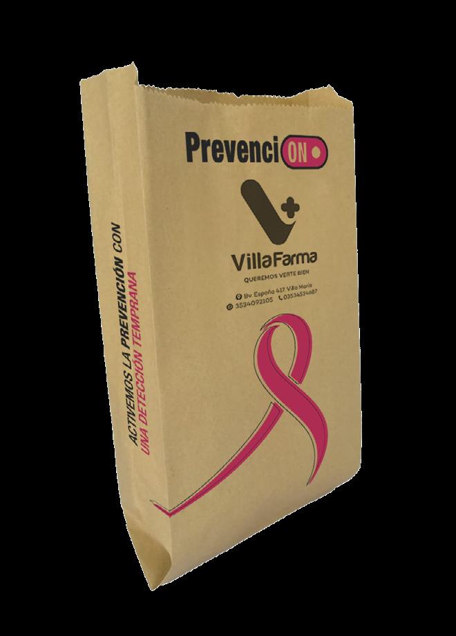 Nosotros acompañamos por ejemplo a diversos colegios e instituciones como el Colegio de Farmacéuticos de Córdoba, quienes nos eligen para realizar bolsas de papel para campañas de concientización con mensajes como el Dengue, el cáncer de piel, u Octubre Rosa, que distribuyen en su red de farmacias.