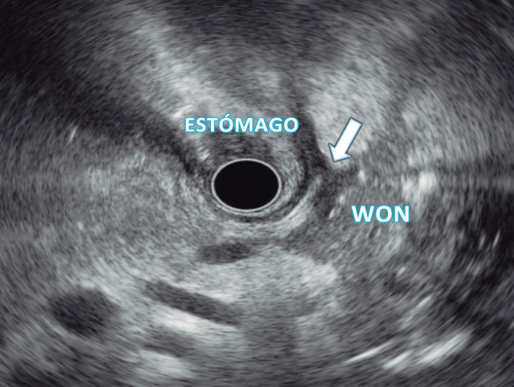 La ecoendoscopia es el método de elección para caracterizar el WON, determinar si el abordaje será endoscópico o quirúrgico y prever el número de sesiones endoscópicas requeridas para el drenaje.9
