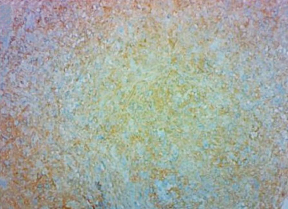 A(3-A). Histopathology: Lesion with a neurofibromatous appearance showing areas of nuclear atypia and hypercellularity in the absence of mitosis and necrosis (3-B -H&E- and 3-C -IHC p53-).