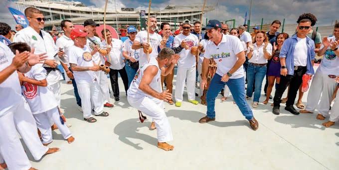 Governador Helder Barbalho até experimentou o jogo de capoeira junto a profissionais