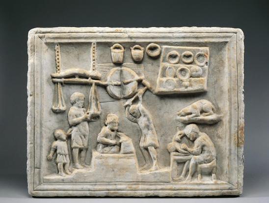 Mais conhecimento e energia levaram à divisão do trabalho e mais inovação. Este relevo de mármore retrata uma oficina de cobre em Pompeia durante o primeiro século