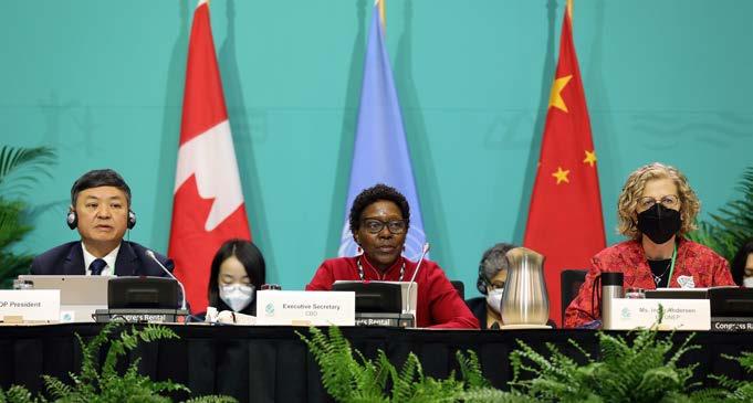 Huang Runqiu, Ministro da Ecologia e Meio Ambiente da China e Presidente da Décima Quinta Conferência das Partes (COP), destacou o compromisso da China, observando que “devemos agora concluir um pacto de paz com a natureza” por meio de um GBF renovado.