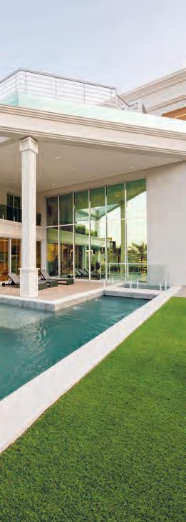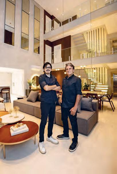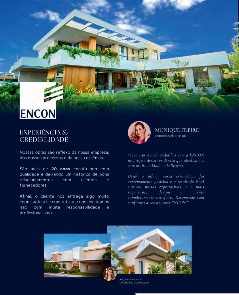 Ideias do projeto. Com 1200 m² distribuídos em quatro pavimentos, esta residência unifamiliar, assinada por Daniela Benicio e Juliana Benicio, alia uma arquitetura clássica contemporânea com um design voltado ao conforto, à exclusividade e ao bem-estar. Pensada para um estilo de vida sofisticado, o lar oferece ambientes amplos e integrados, que proporcionam aos moradores momentos de lazer e tranquilidade sem precisar sair de casa, dispondo de um espaço gourmet equipado para receber em ocasiões especiais, um salão de jogos completo, sala de cinema e oratório para momentos de reflexão. No térreo, os ambientes sociais se conectam com espaço gourmet e fluem naturalmente para a área da piscina de raia e bar molhado, criando um ambiente ideal para compartilhar com amigos e familiares. No pavimento superior, as suítes garantem privacidade e conforto, tornando-se refúgios perfeitos para descanso e relaxamento. A paleta de cores neutras e claras é pontuada por tons sóbrios e madeirados, promovendo uma linguagem estética elegante e atemporal, que revela como o luxo pode ser harmoniosamente combinado com uma arquitetura funcional e exclusiva. Detalhes marcantes. O rooftop se destaca como uma área ao ar livre, projetada para momentos de descontração, com vista privilegiada.