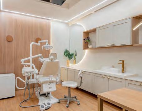 Ideias do projeto O foco do projeto elaborado pela arquiteta Ticiana Martins para a clínica médica foi a funcionalidade, mas sem abrir mão da sensação de bem-estar que deveria transmitir aos pacientes. Um dos desafios foi adequar os 76 m² disponíveis ao extenso programa de necessidades, que deveria contemplar hall, recepção, lavabo, duas salas de procedimentos e um consultório versátil para atender diferentes usos. A distribuição moderna do layout otimizou as circulações, tornando o dia a dia de trabalho mais prático. Para compor uma atmosfera acolhedora, a ambientação foi trabalhada nos tons neutros e terrosos em móveis e painéis, acrescidos da calidez dos padrões madeirados. Os acabamentos em pedra natural e a serralheria em dourado surgem para dar um toque mais refinado ao ambiente. Para finalizar, o luminotécnico alterna cenas mais intimistas e funcionais, respeitando o papel de cada espaço.