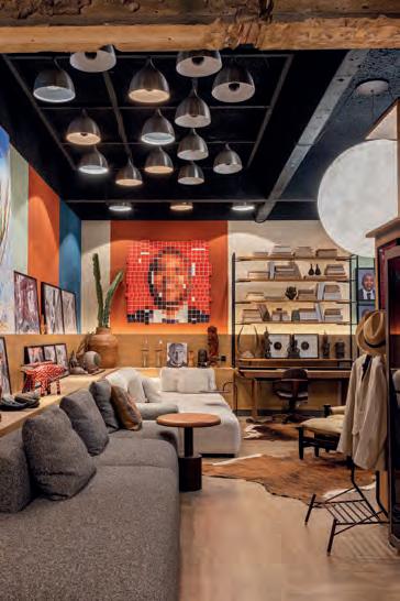 Detalhes marcantes. O grande diferencial da nova loja foi o jogo envolvendo as diferentes alturas de pé-direito. Nos planos mais altos, vigas envelopadas em madeira com dimensões variadas, e sustentadas por cabos de aço, são elementos de destaque. A serralheria em preto foi amplamente utilizada em estantes, prateleiras e gôndolas para destacar objetos e produtos.
