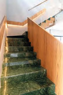 MARDEL Mármores dos tampos de mesa e bancadas dos banheiros.