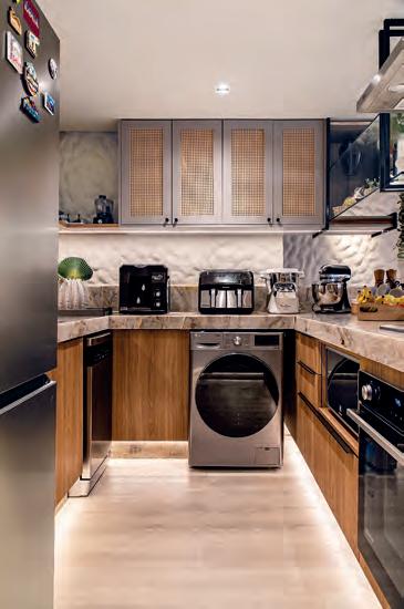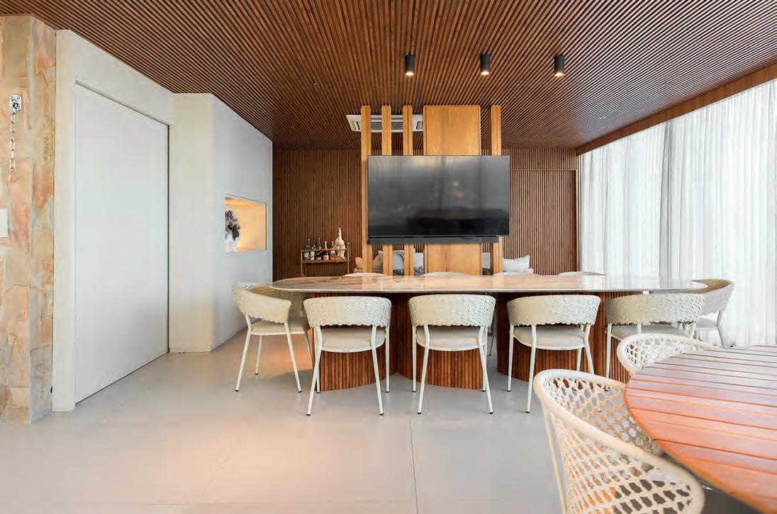 DETALHE MARCENARIA. Mobiliário fixo. DULUZ. Iluminação. FLÁVIA FONTENELE GESTÃO DE OBRAS. Execução da obra civil. FINA CASA. Revestimentos especiais. MSX ESQUADRIAS. Esquadrias de alumínio.
