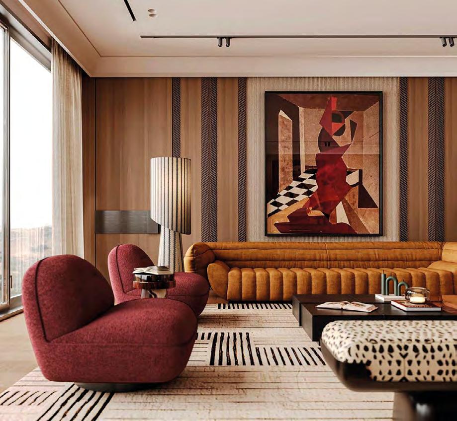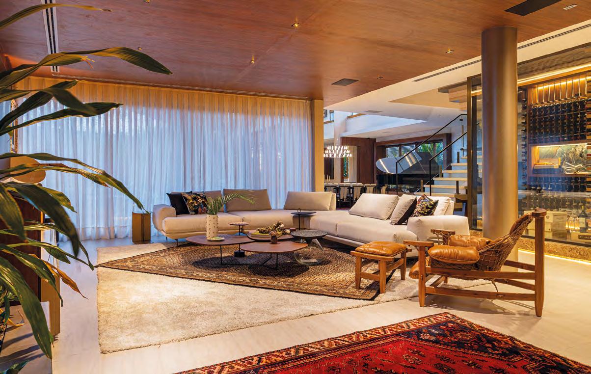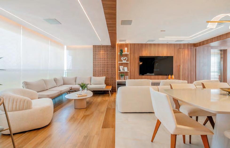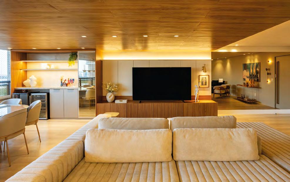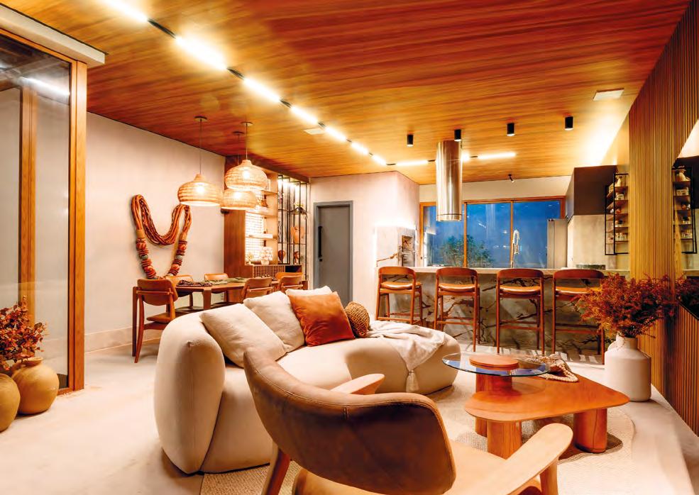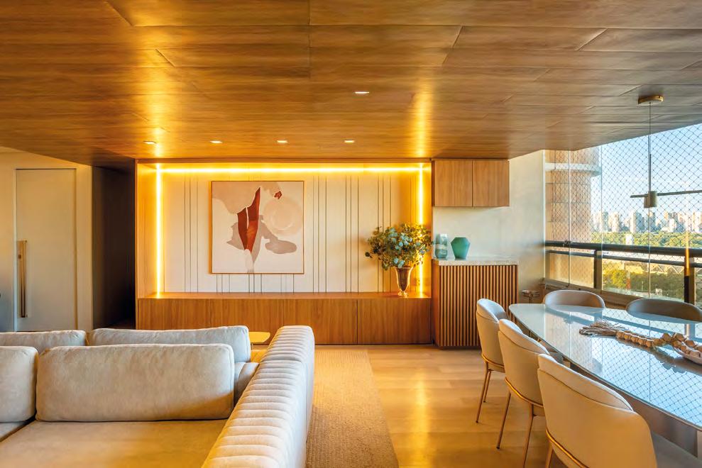 Os amadeirados seguem como protagonistas, vestindo paredes e tetos em uma diversidade de nuances e tonalidades.