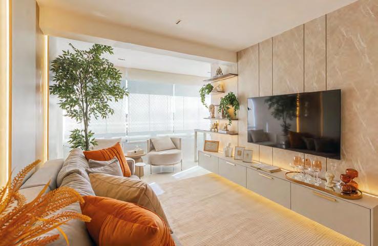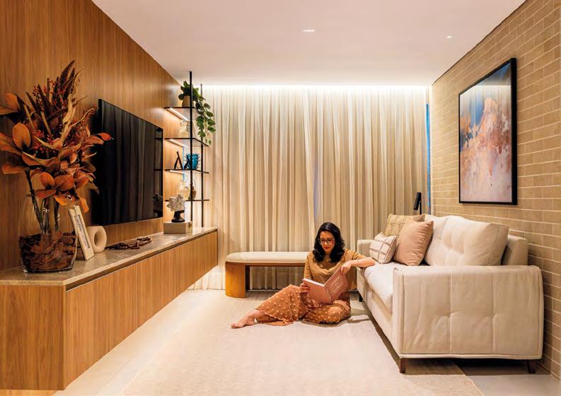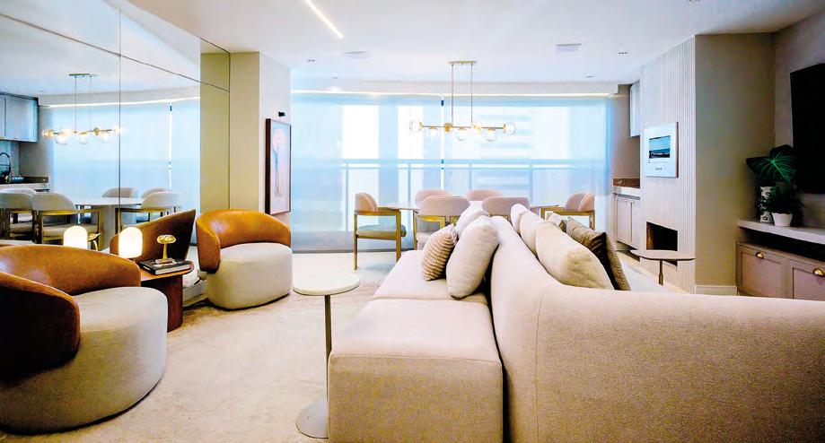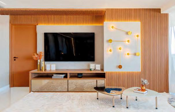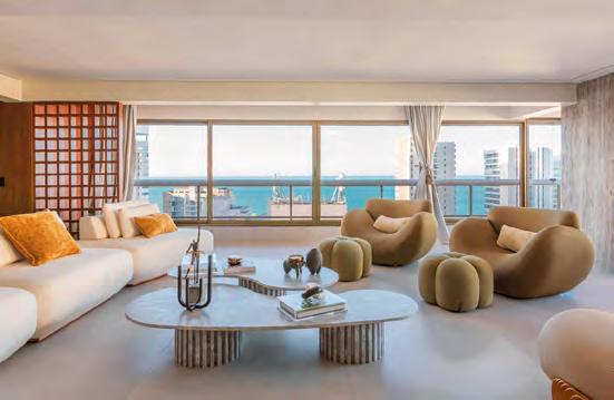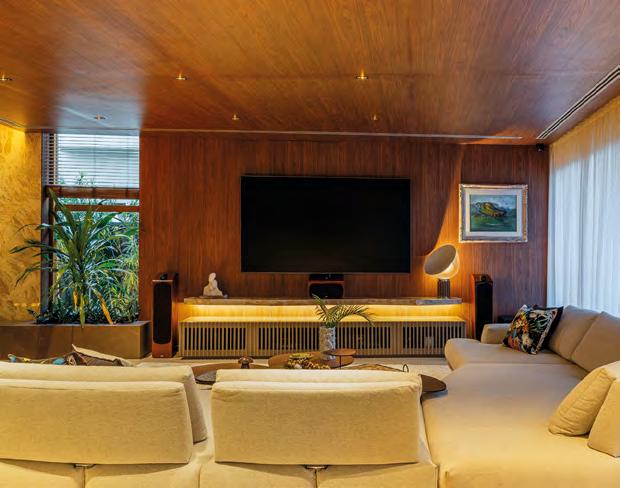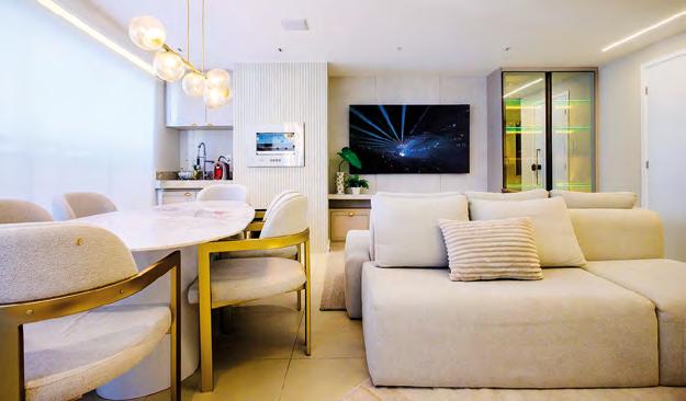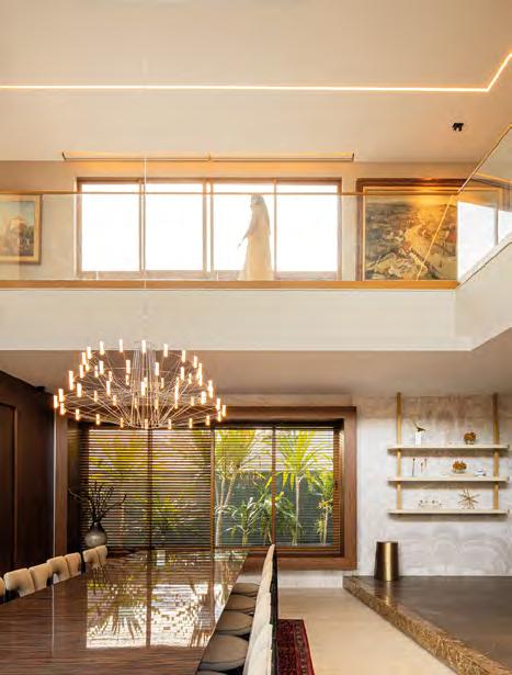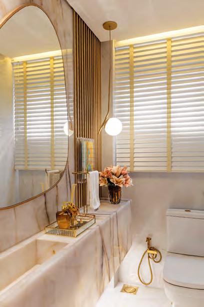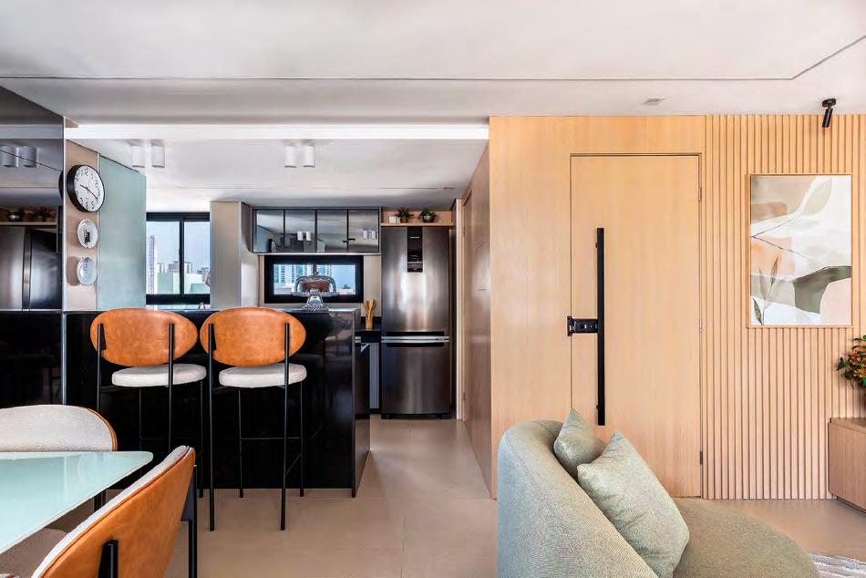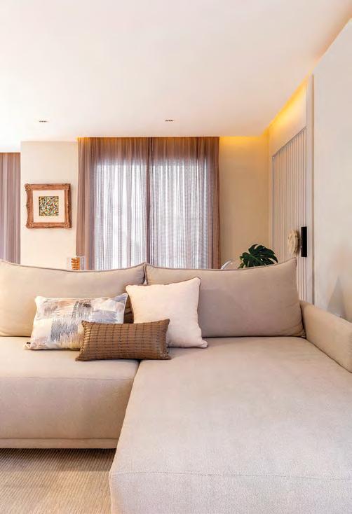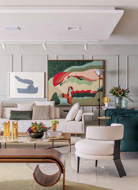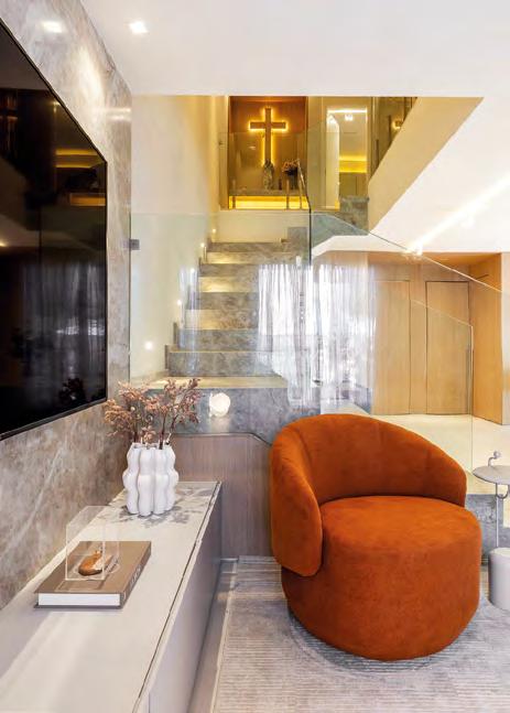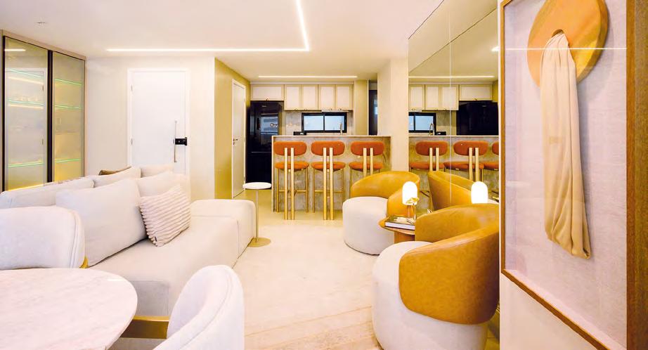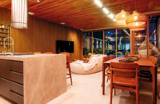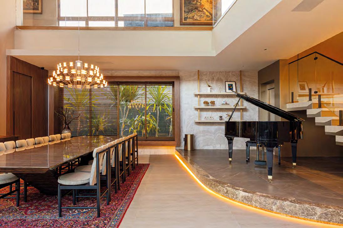 94- EM FOCO. Com atmosfera elegante e sensorial, o projeto de Denise Bringel une luz natural, integração e materiais sofisticados a uma curadoria de arte e design brasileiro, compondo uma residência pensada para o conforto e o bem-estar no cotidiano.